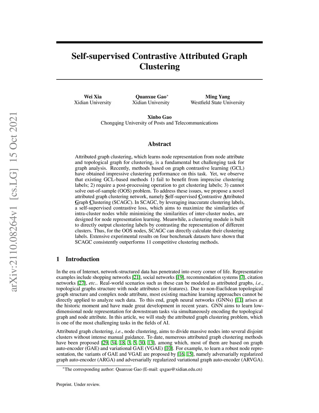 Self-supervised Contrastive Attributed Graph Clustering