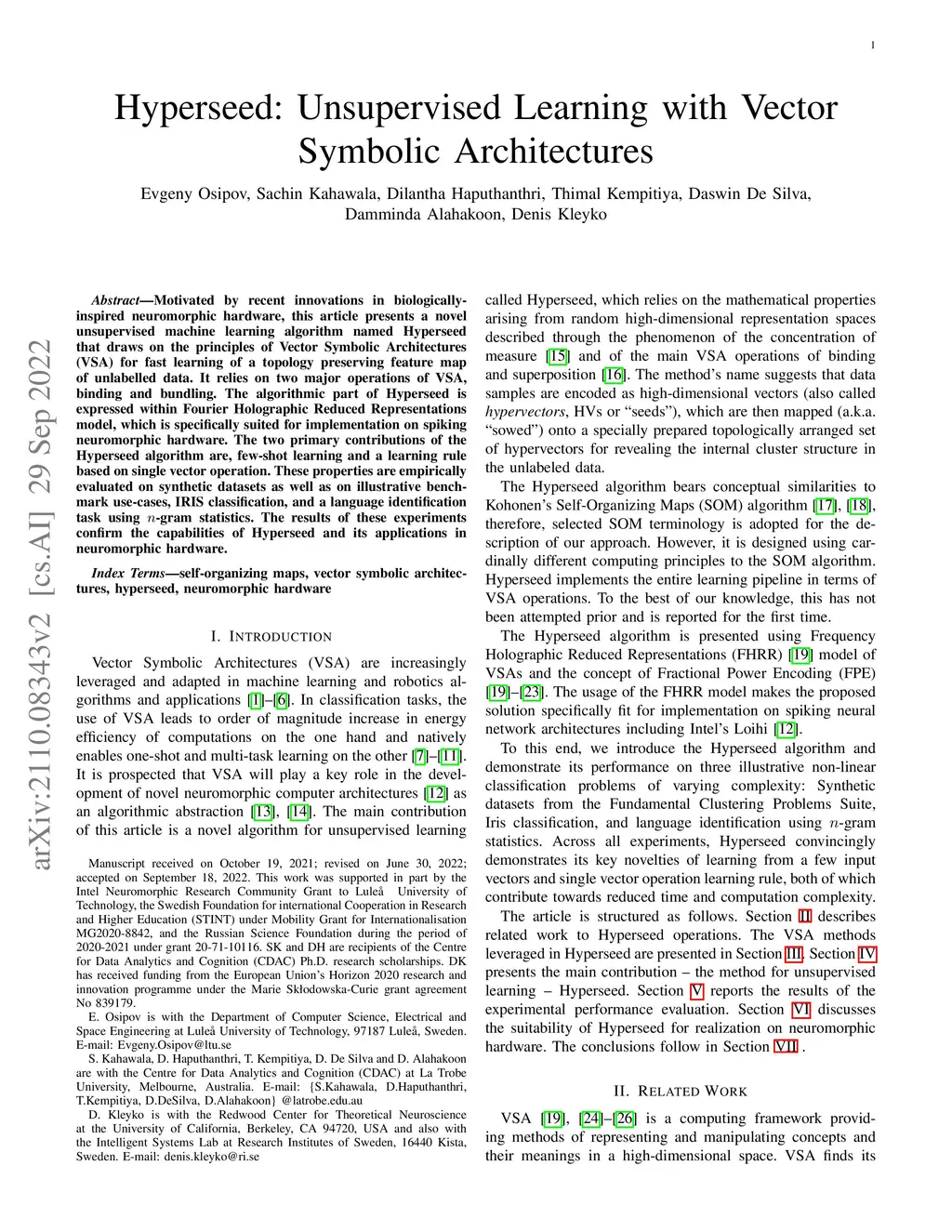 Hyperseed: Unsupervised Learning with Vector Symbolic Architectures