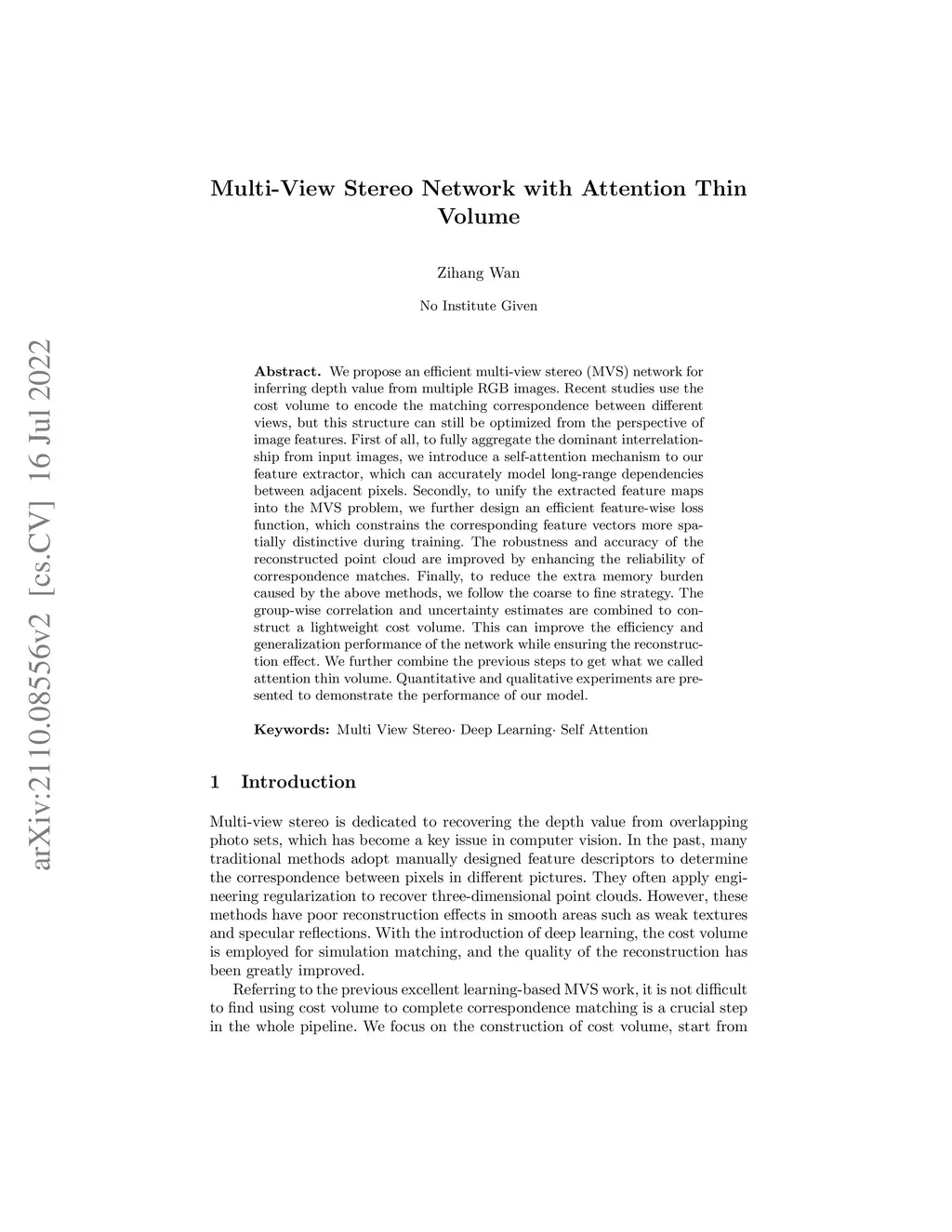 Multi-View Stereo Network with attention thin volume