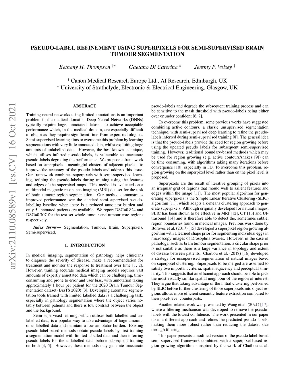Pseudo-label refinement using superpixels for semi-supervised brain