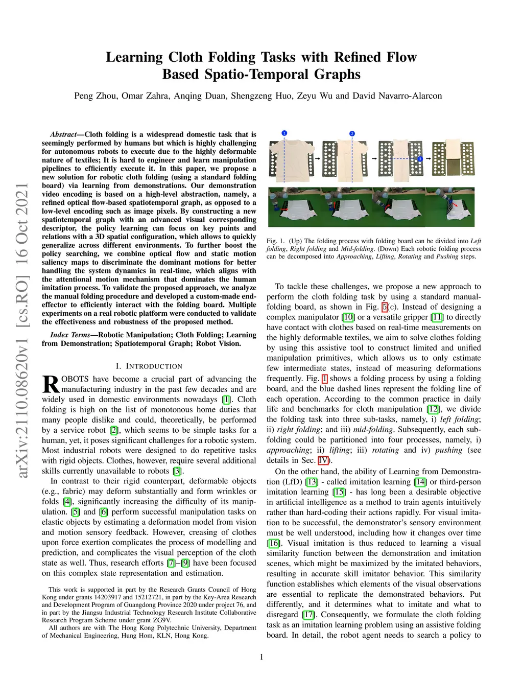 Learning Cloth Folding Tasks with Refined Flow Based Spatio-Temporal