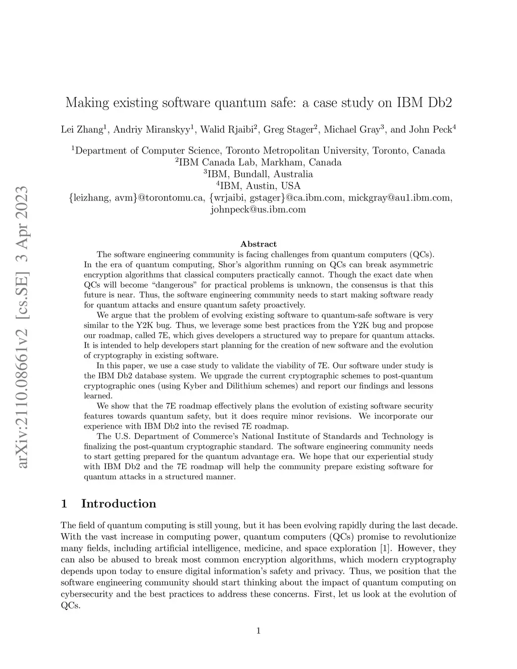 The software engineering community is facing challenges from quantum computers (QCs). In the era of quantum computing, Shor's algorithm running on QCs can break asymmetric encryption algorithms that classical computers practically cannot. Though the exact date when QCs will become "dangerous" for practical problems is unknown, the consensus is that this future is near. Thus, the software engineering community needs to start making software ready for quantum attacks and ensure quantum safety proactively. We argue that the problem of evolving existing software to quantum-safe software is very similar to the Y2K bug. Thus, we leverage some best practices from the Y2K bug and propose our roadmap, called 7E, which gives developers a structured way to prepare for quantum attacks. It is intended to help developers start planning for the creation of new software and the evolution of cryptography in existing software. In this paper, we use a case study to validate the viability of 7E. Our software under study is the IBM Db2 database system. We upgrade the current cryptographic schemes to post-quantum cryptographic ones (using Kyber and Dilithium schemes) and report our findings and lessons learned. We show that the 7E roadmap effectively plans the evolution of existing software security features towards quantum safety, but it does require minor revisions. We incorporate our experience with IBM Db2 into the revised 7E roadmap. The U.S. Department of Commerce's National Institute of Standards and Technology is finalizing the post-quantum cryptographic standard. The software engineering community needs to start getting prepared for the quantum advantage era. We hope that our experiential study with IBM Db2 and the 7E roadmap will help the community prepare existing software for quantum attacks in a structured manner.
