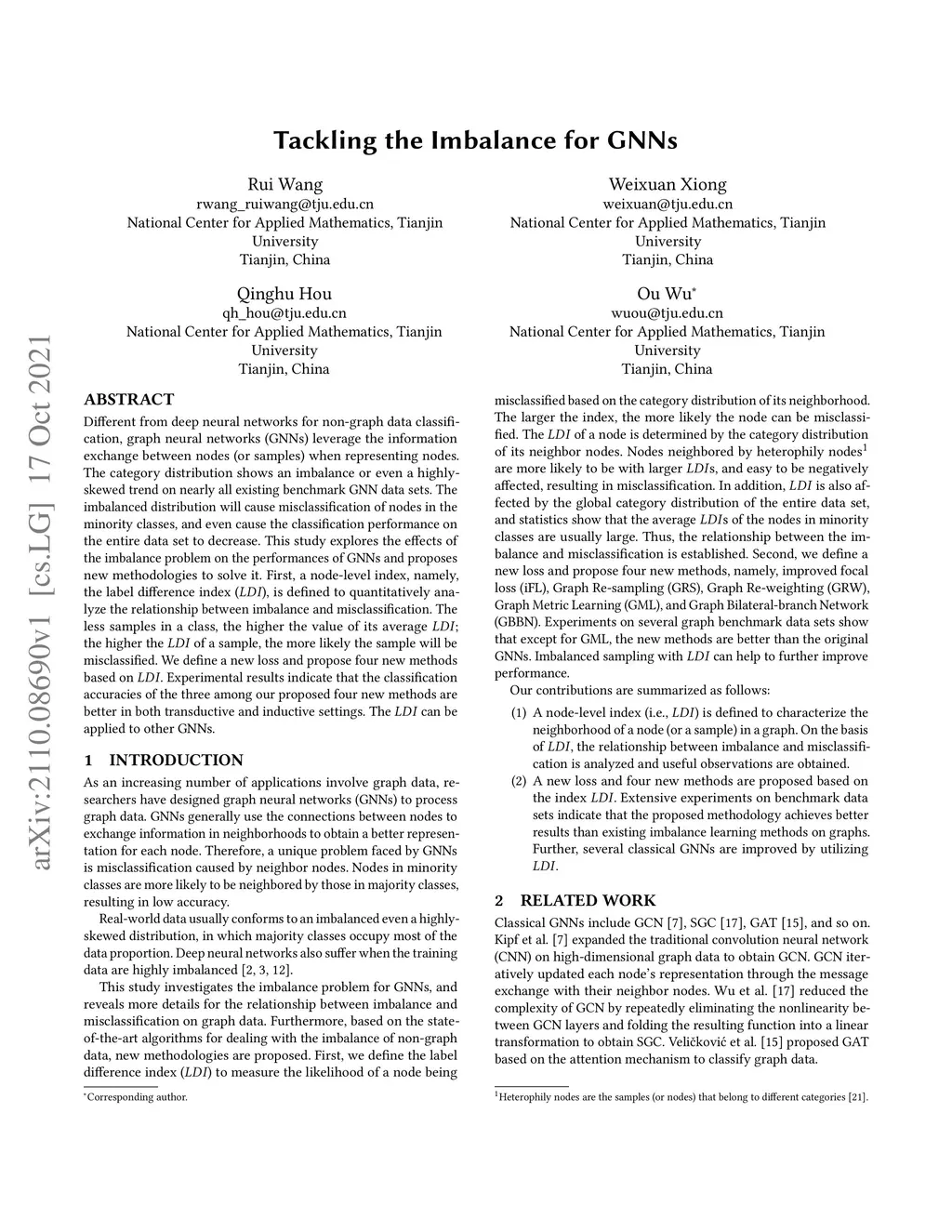 Different from deep neural networks for non-graph data classification, graph neural networks (GNNs) leverage the information exchange between nodes (or samples) when representing nodes. The category distribution shows an imbalance or even a highly-skewed trend on nearly all existing benchmark GNN data sets. The imbalanced distribution will cause misclassification of nodes in the minority classes, and even cause the classification performance on the entire data set to decrease. This study explores the effects of the imbalance problem on the performances of GNNs and proposes new methodologies to solve it. First, a node-level index, namely, the label difference index (), is defined to quantitatively analyze the relationship between imbalance and misclassification. The less samples in a class, the higher the value of its average ; the higher the of a sample, the more likely the sample will be misclassified. We define a new loss and propose four new methods based on . Experimental results indicate that the classification accuracies of the three among our proposed four new methods are better in both transductive and inductive settings. The can be applied to other GNNs.