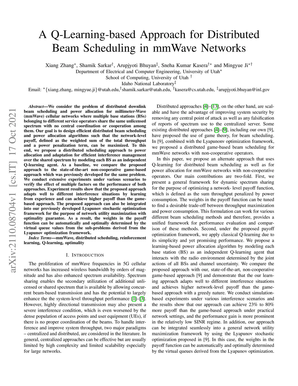 A Q-Learning-based Approach for Distributed Beam Scheduling in mmWave