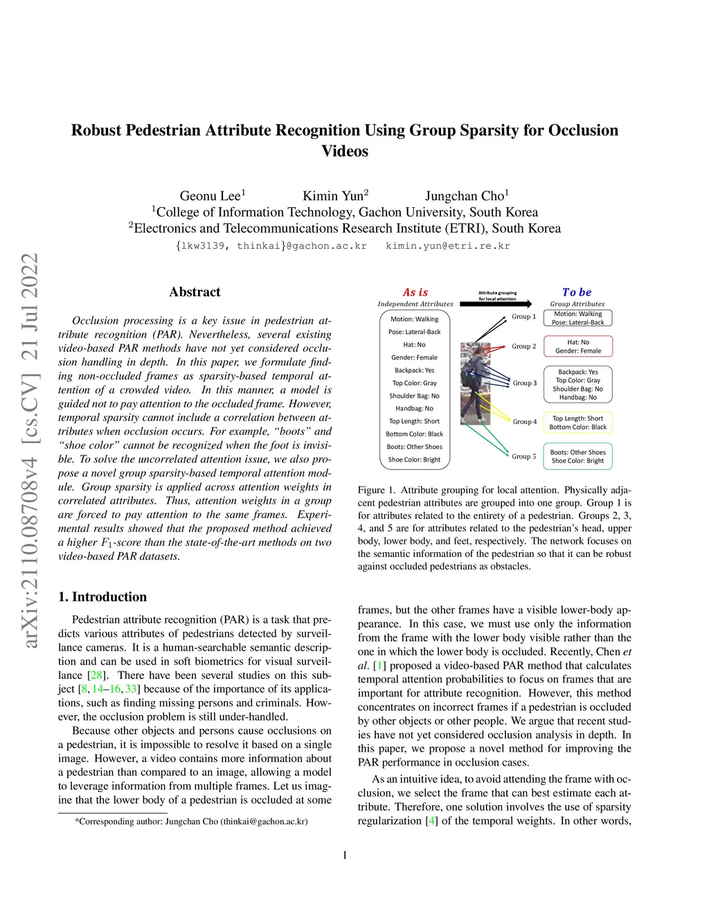 Robust Pedestrian Attribute Recognition Using Group Sparsity for