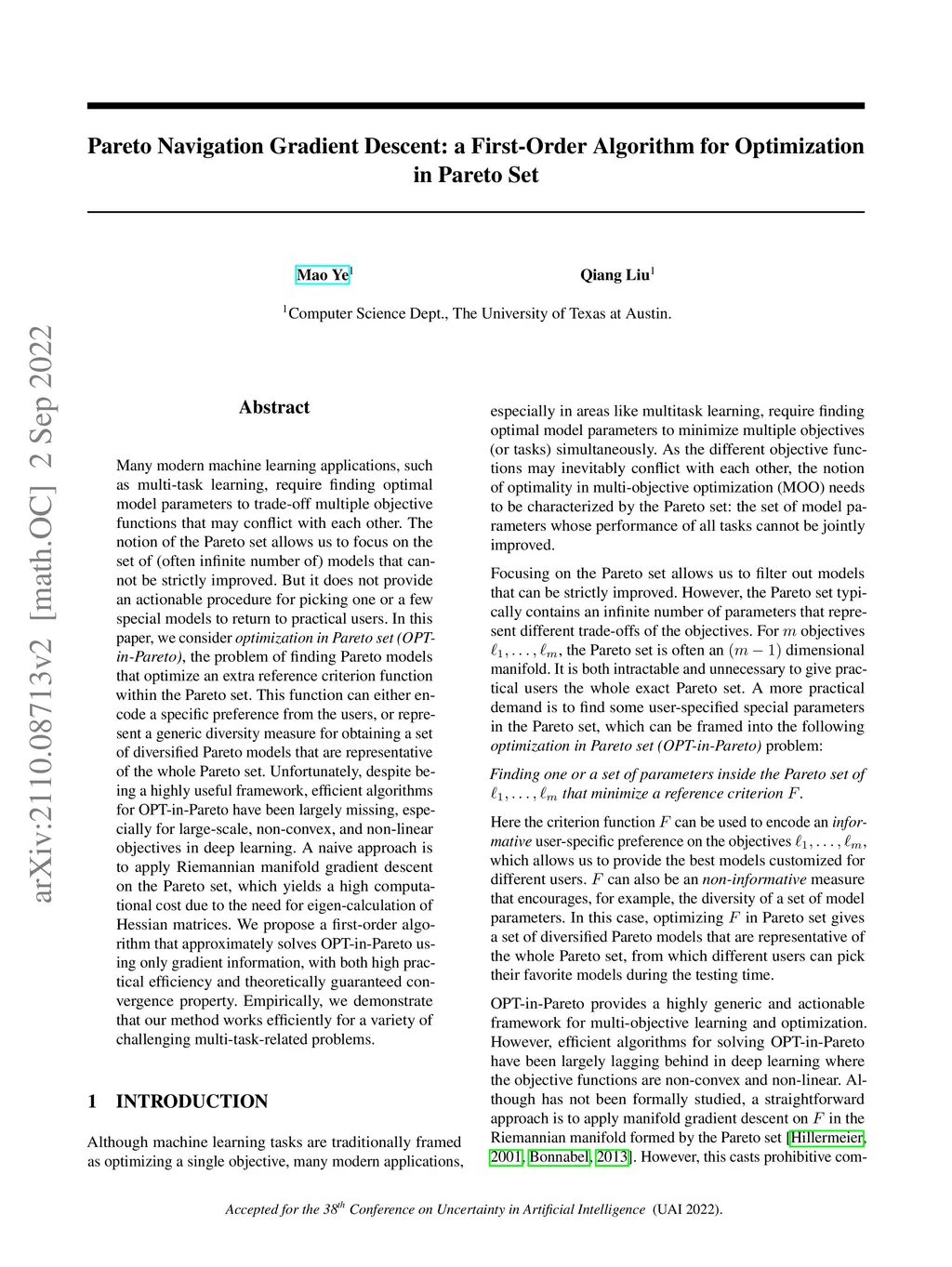 Pareto Navigation Gradient Descent: a First-Order Algorithm for