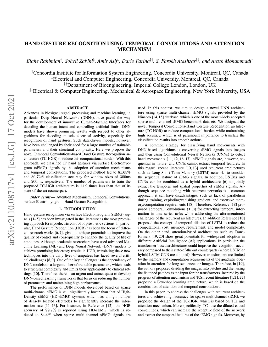 Hand Gesture Recognition Using Temporal Convolutions and Attention