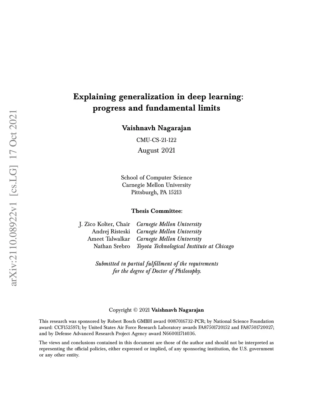 Explaining generalization in deep learning: progress and fundamental