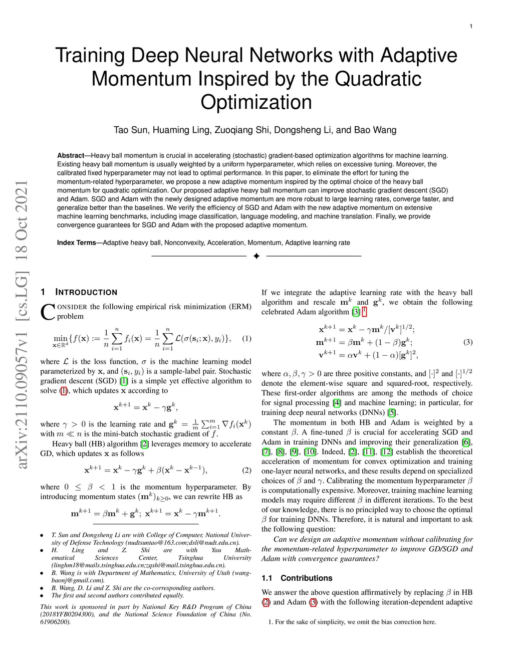 Training Deep Neural Networks with Adaptive Momentum Inspired by the