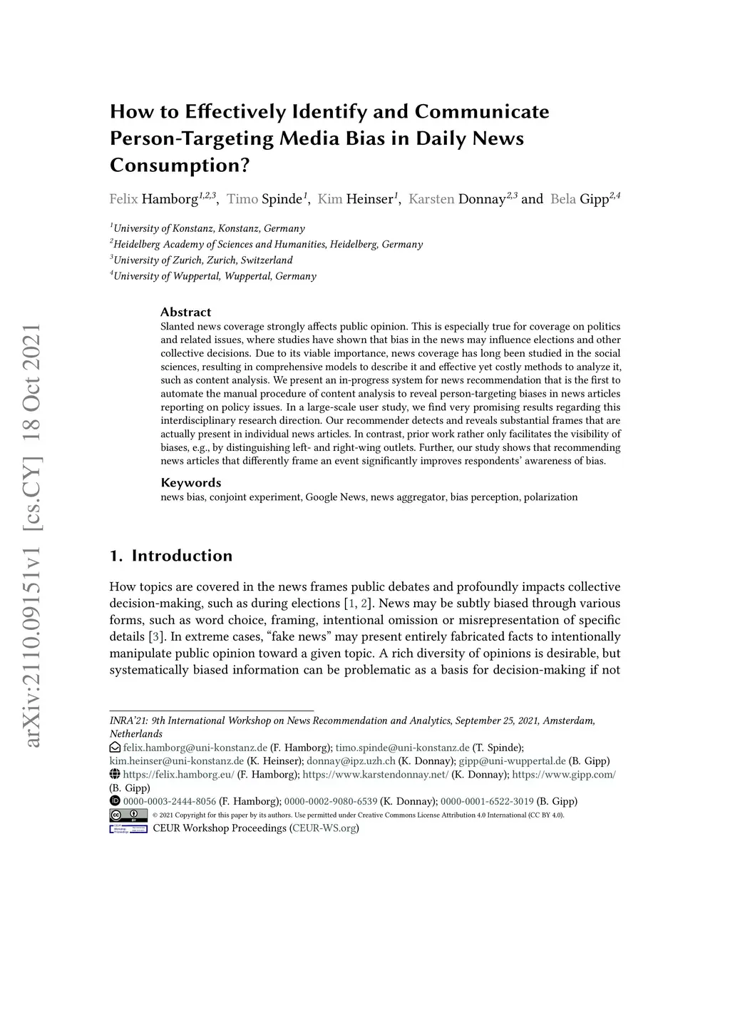 Slanted news coverage strongly affects public opinion. This is especially true for coverage on politics and related issues, where studies have shown that bias in the news may influence elections and other collective decisions. Due to its viable importance, news coverage has long been studied in the social sciences, resulting in comprehensive models to describe it and effective yet costly methods to analyze it, such as content analysis. We present an in-progress system for news recommendation that is the first to automate the manual procedure of content analysis to reveal person-targeting biases in news articles reporting on policy issues. In a large-scale user study, we find very promising results regarding this interdisciplinary research direction. Our recommender detects and reveals substantial frames that are actually present in individual news articles. In contrast, prior work rather only facilitates the visibility of biases, e.g., by distinguishing left- and right-wing outlets. Further, our study shows that recommending news articles that differently frame an event significantly improves respondents' awareness of bias.