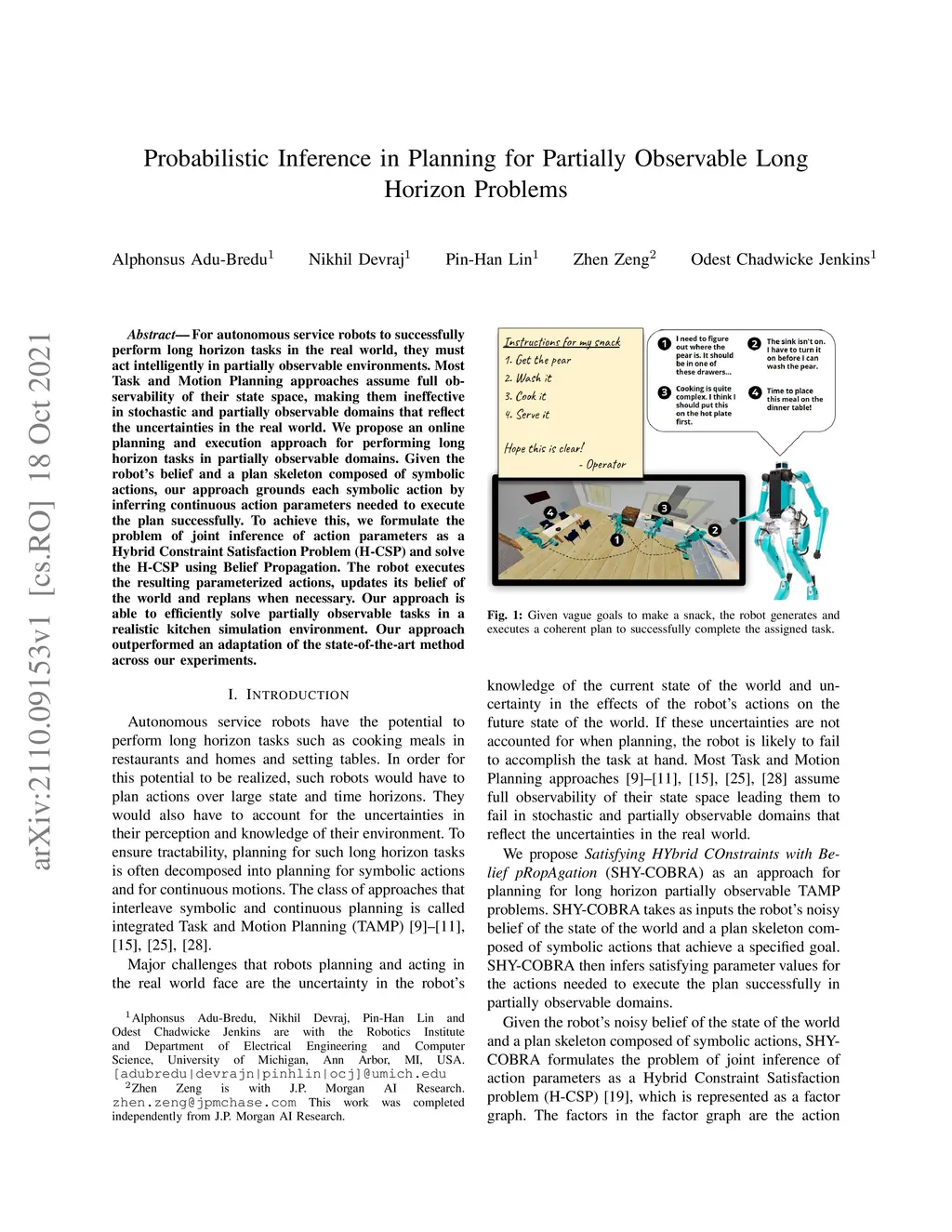 For autonomous service robots to successfully perform long horizon tasks in the real world, they must act intelligently in partially observable environments. Most Task and Motion Planning approaches assume full observability of their state space, making them ineffective in stochastic and partially observable domains that reflect the uncertainties in the real world. We propose an online planning and execution approach for performing long horizon tasks in partially observable domains. Given the robot's belief and a plan skeleton composed of symbolic actions, our approach grounds each symbolic action by inferring continuous action parameters needed to execute the plan successfully. To achieve this, we formulate the problem of joint inference of action parameters as a Hybrid Constraint Satisfaction Problem (H-CSP) and solve the H-CSP using Belief Propagation. The robot executes the resulting parameterized actions, updates its belief of the world and replans when necessary. Our approach is able to efficiently solve partially observable tasks in a realistic kitchen simulation environment. Our approach outperformed an adaptation of the state-of-the-art method across our experiments.