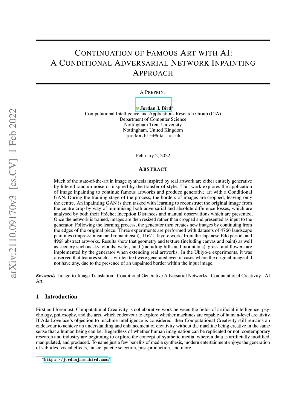 Continuation of Famous Art with AI: A Conditional Adversarial Network
