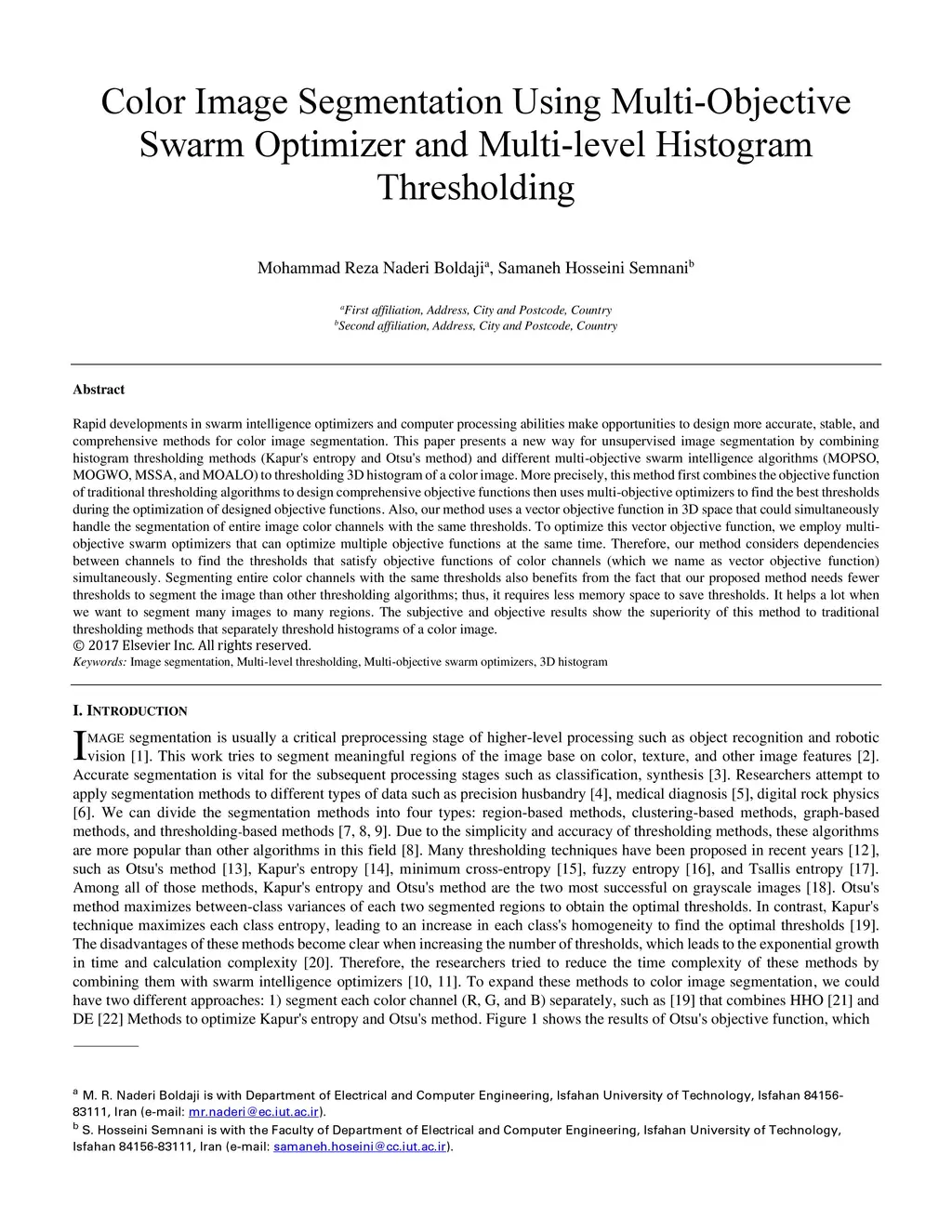Color Image Segmentation Using Multi-Objective Swarm Optimizer and