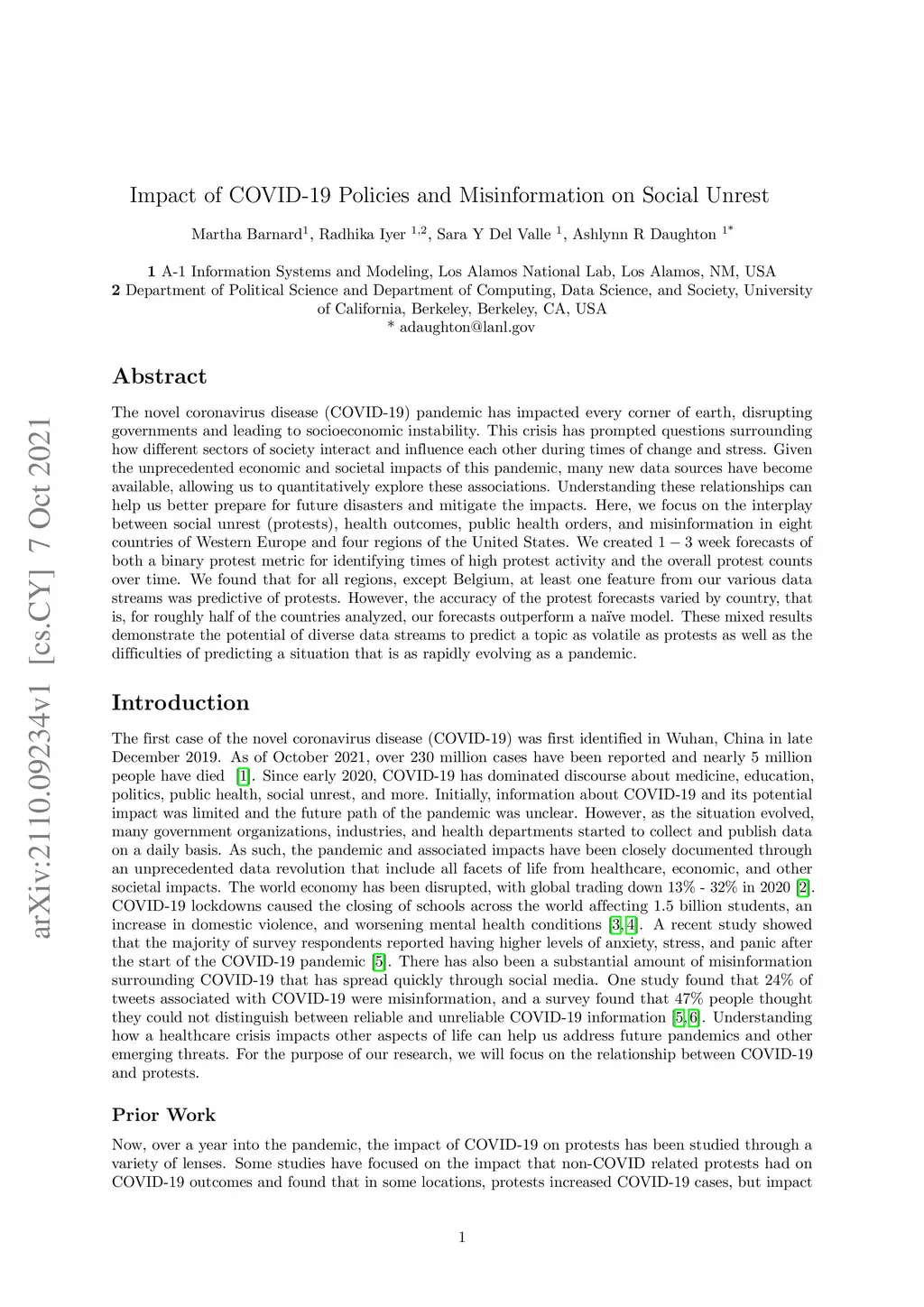 Impact of COVID-19 Policies and Misinformation on Social Unrest
