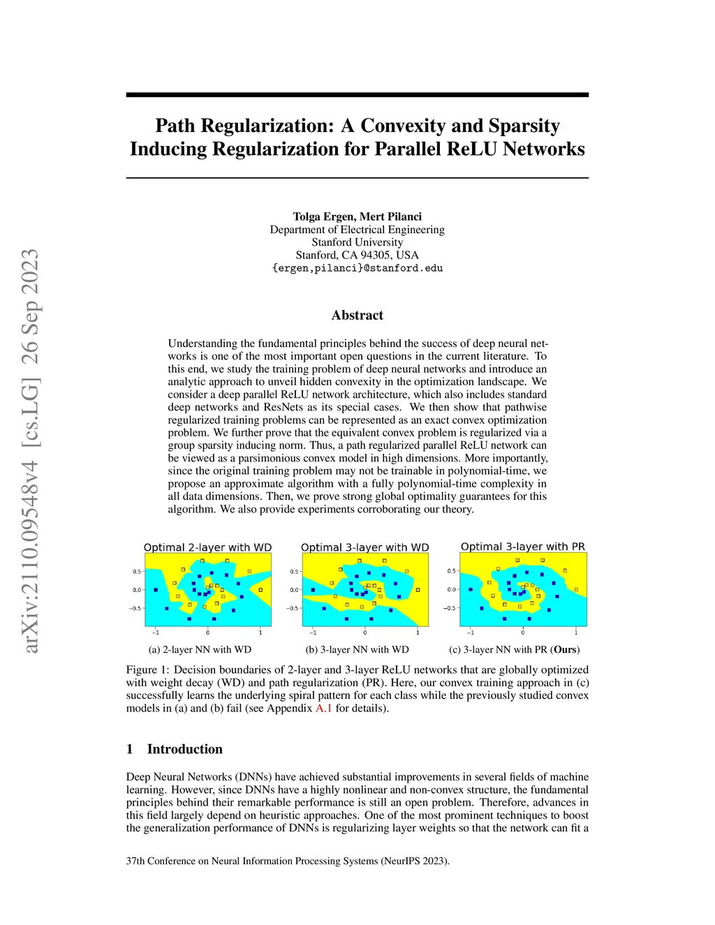Despite several attempts, the fundamental mechanisms behind the success of deep neural networks still remain elusive. To this end, we introduce a novel analytic framework to unveil hidden convexity in training deep neural networks. We consider a parallel architecture with multiple ReLU sub-networks, which includes many standard deep architectures and ResNets as its special cases. We then show that the training problem with path regularization can be cast as a single convex optimization problem in a high-dimensional space. We further prove that the equivalent convex program is regularized via a group sparsity inducing norm. Thus, a path regularized parallel architecture with ReLU sub-networks can be viewed as a parsimonious feature selection method in high-dimensions. More importantly, we show that the computational complexity required to globally optimize the equivalent convex problem is polynomial-time with respect to the number of data samples and feature dimension. Therefore, we prove exact polynomial-time trainability for path regularized deep ReLU networks with global optimality guarantees. We also provide several numerical experiments corroborating our theory.