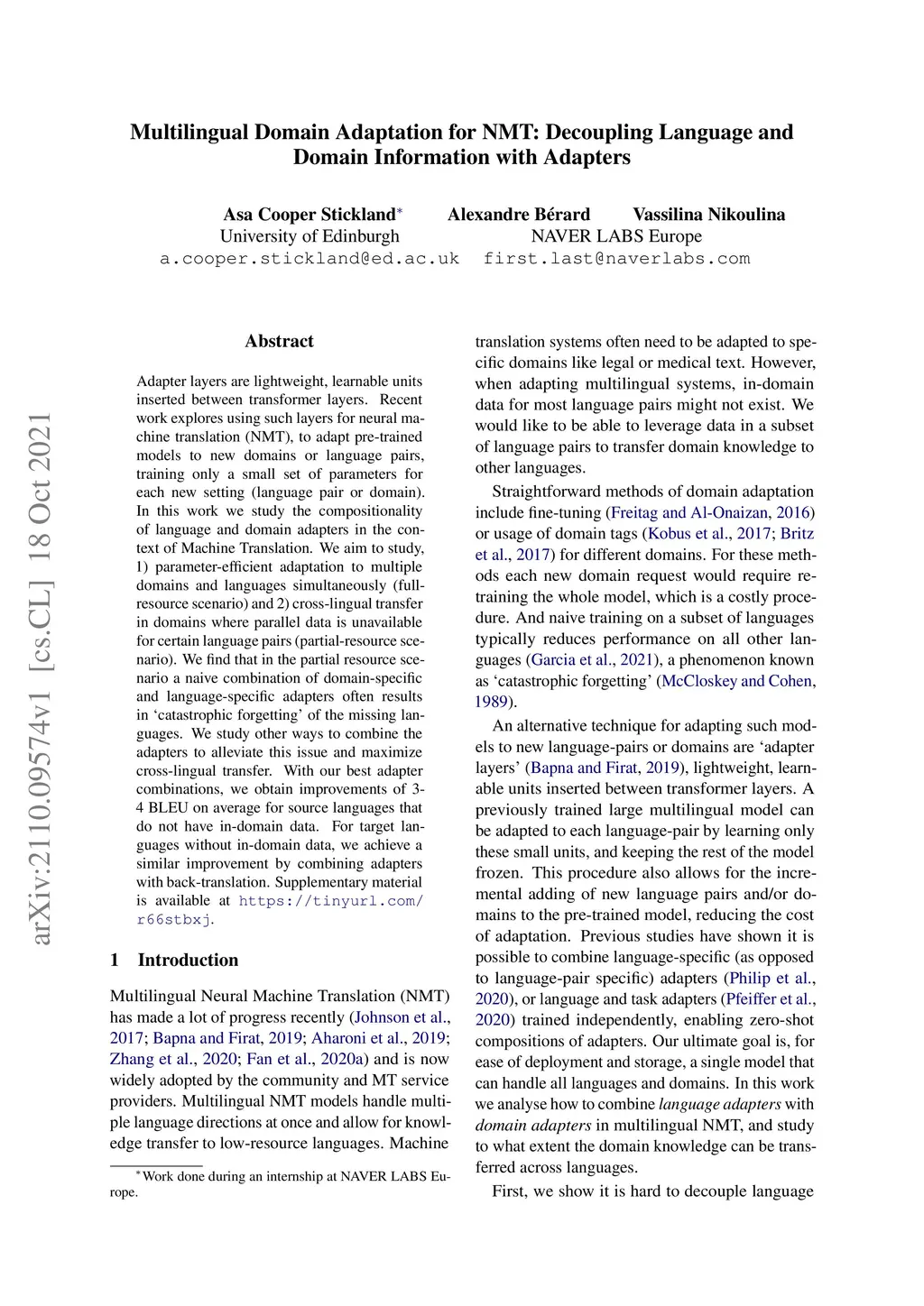 Multilingual Domain Adaptation for NMT: Decoupling Language and Domain