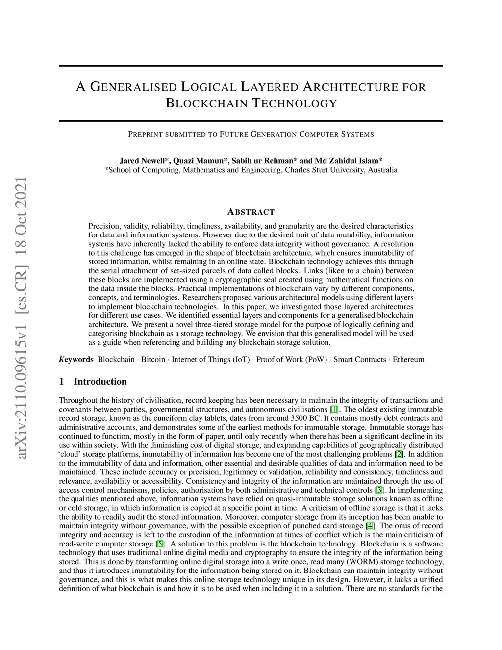 A Generalised Logical Layered Architecture for Blockchain Technology