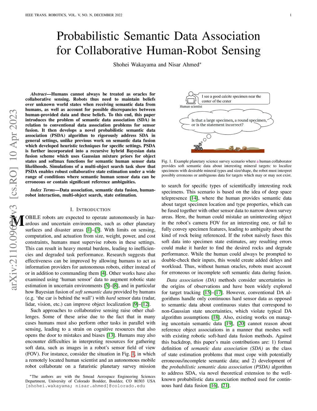 Probabilistic Semantic Data Association for Collaborative Human-Robot