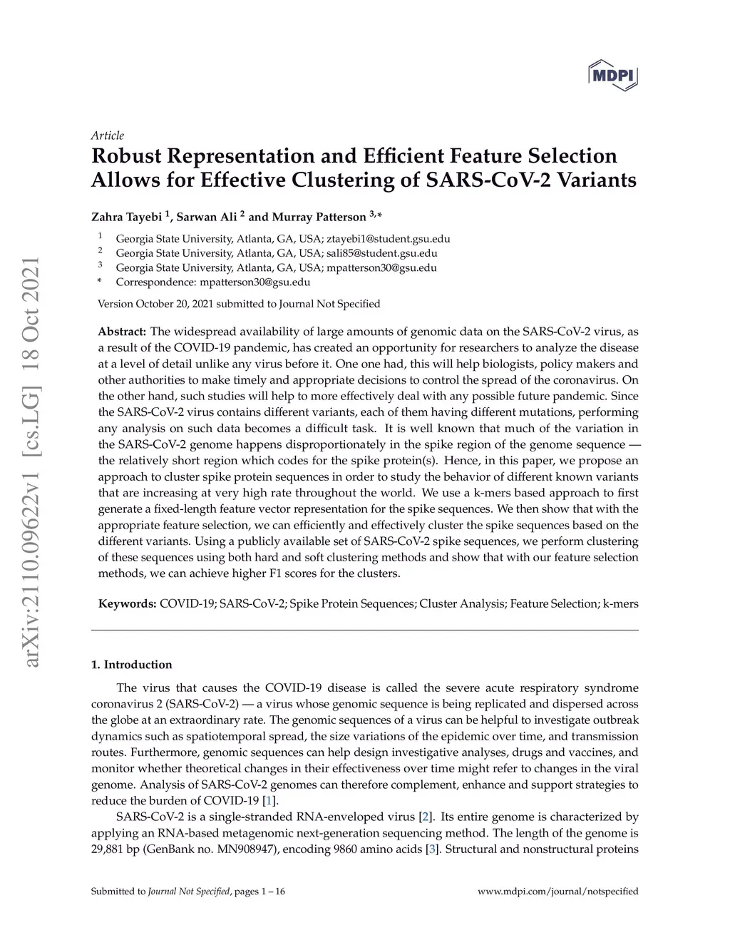 The widespread availability of large amounts of genomic data on the SARS-CoV-2 virus, as a result of the COVID-19 pandemic, has created an opportunity for researchers to analyze the disease at a level of detail unlike any virus before it. One one had, this will help biologists, policy makers and other authorities to make timely and appropriate decisions to control the spread of the coronavirus. On the other hand, such studies will help to more effectively deal with any possible future pandemic. Since the SARS-CoV-2 virus contains different variants, each of them having different mutations, performing any analysis on such data becomes a difficult task. It is well known that much of the variation in the SARS-CoV-2 genome happens disproportionately in the spike region of the genome sequence -- the relatively short region which codes for the spike protein(s). Hence, in this paper, we propose an approach to cluster spike protein sequences in order to study the behavior of different known variants that are increasing at very high rate throughout the world. We use a k-mers based approach to first generate a fixed-length feature vector representation for the spike sequences. We then show that with the appropriate feature selection, we can efficiently and effectively cluster the spike sequences based on the different variants. Using a publicly available set of SARS-CoV-2 spike sequences, we perform clustering of these sequences using both hard and soft clustering methods and show that with our feature selection methods, we can achieve higher F1 scores for the clusters.