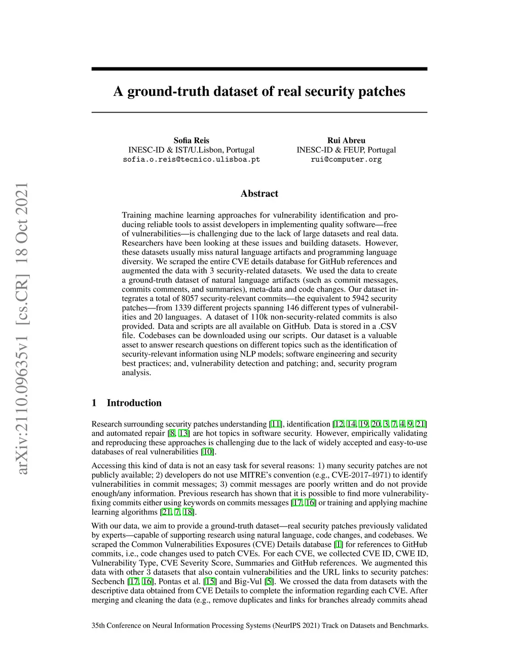 Training machine learning approaches for vulnerability identification and producing reliable tools to assist developers in implementing quality software -- free of vulnerabilities -- is challenging due to the lack of large datasets and real data. Researchers have been looking at these issues and building datasets. However, these datasets usually miss natural language artifacts and programming language diversity. We scraped the entire CVE details database for GitHub references and augmented the data with 3 security-related datasets. We used the data to create a ground-truth dataset of natural language artifacts (such as commit messages, commits comments, and summaries), meta-data and code changes. Our dataset integrates a total of 8057 security-relevant commits -- the equivalent to 5942 security patches -- from 1339 different projects spanning 146 different types of vulnerabilities and 20 languages. A dataset of 110k non-security-related commits is also provided. Data and scripts are all available on GitHub. Data is stored in a .CSV file. Codebases can be downloaded using our scripts. Our dataset is a valuable asset to answer research questions on different topics such as the identification of security-relevant information using NLP models; software engineering and security best practices; and, vulnerability detection and patching; and, security program analysis.