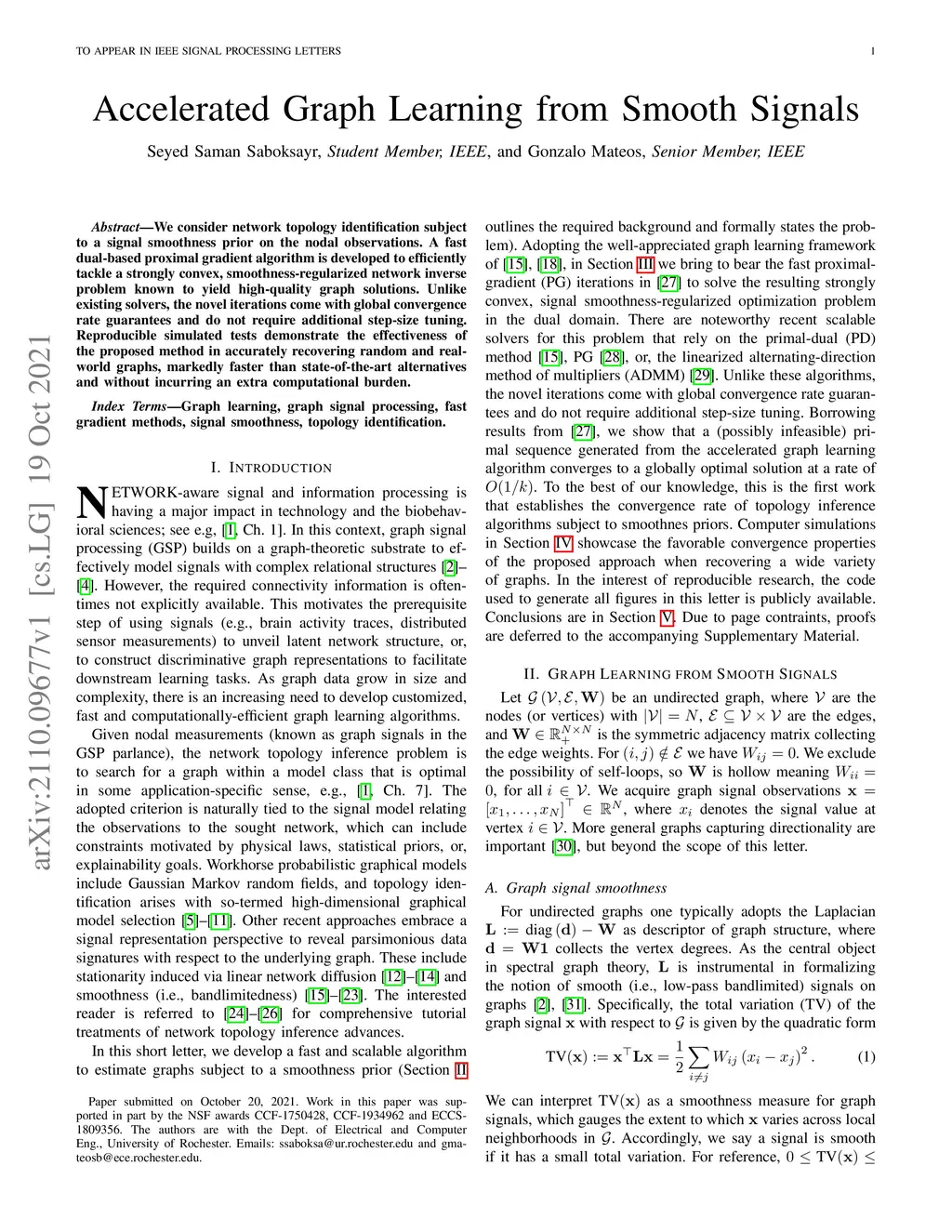 Accelerated Graph Learning from Smooth Signals