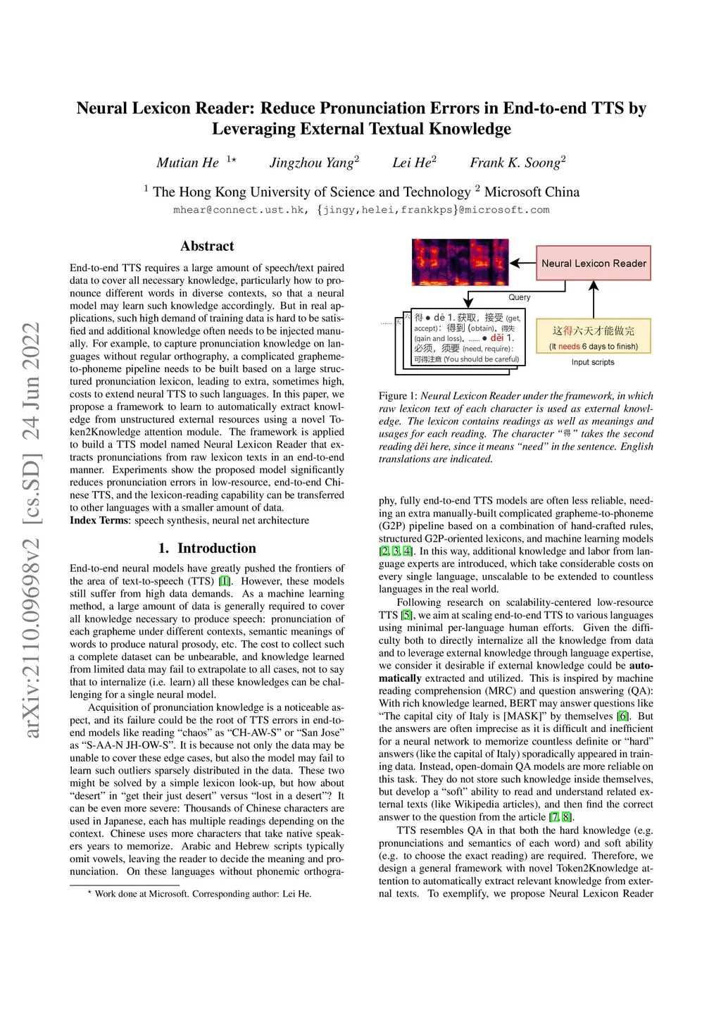 Neural Lexicon Reader: Reduce Pronunciation Errors in End-to-end TTS by