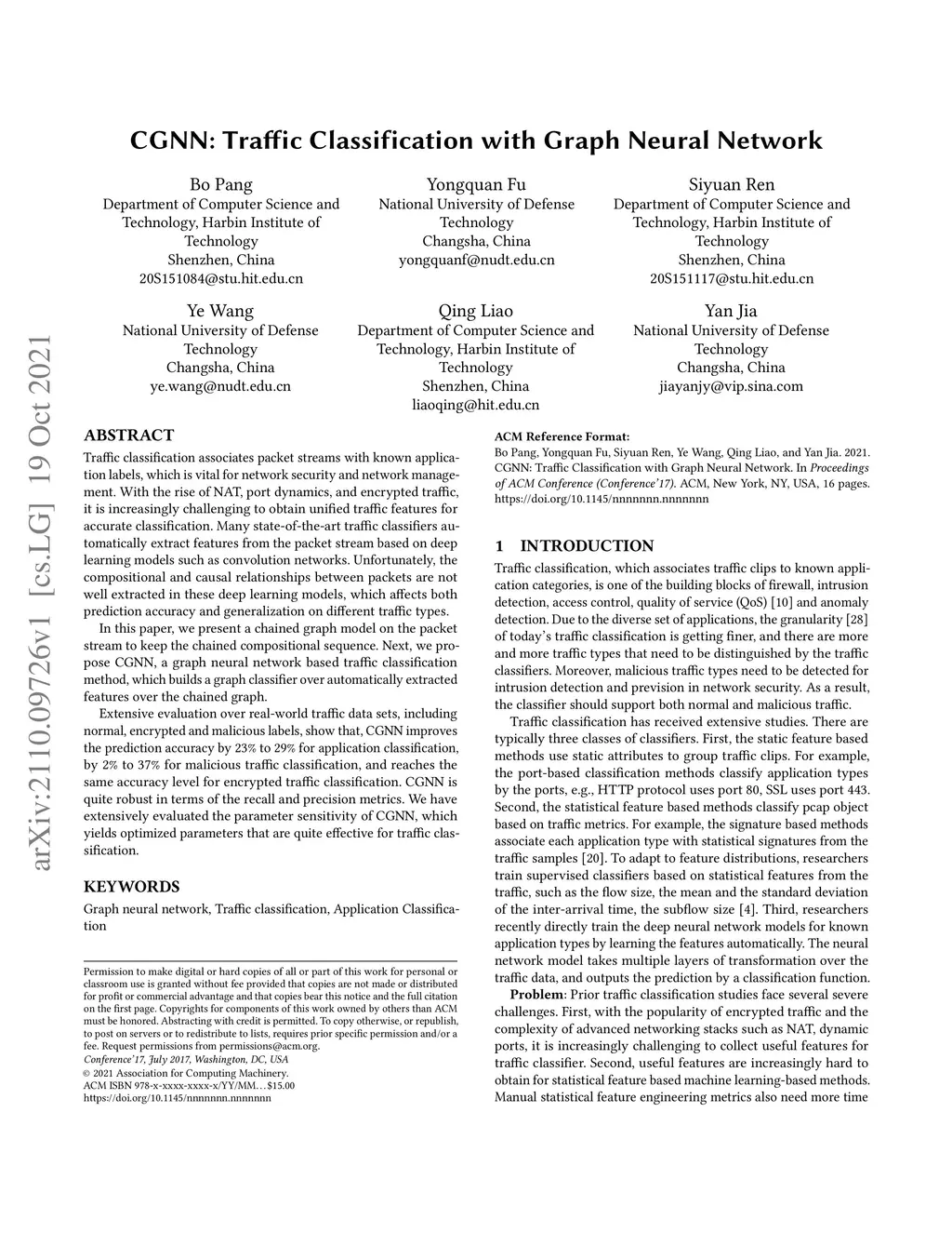 CGNN: Traffic Classification with Graph Neural Network