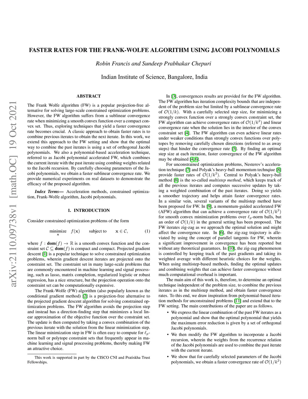 Faster Rates for the Frank-Wolfe Algorithm Using Jacobi Polynomials