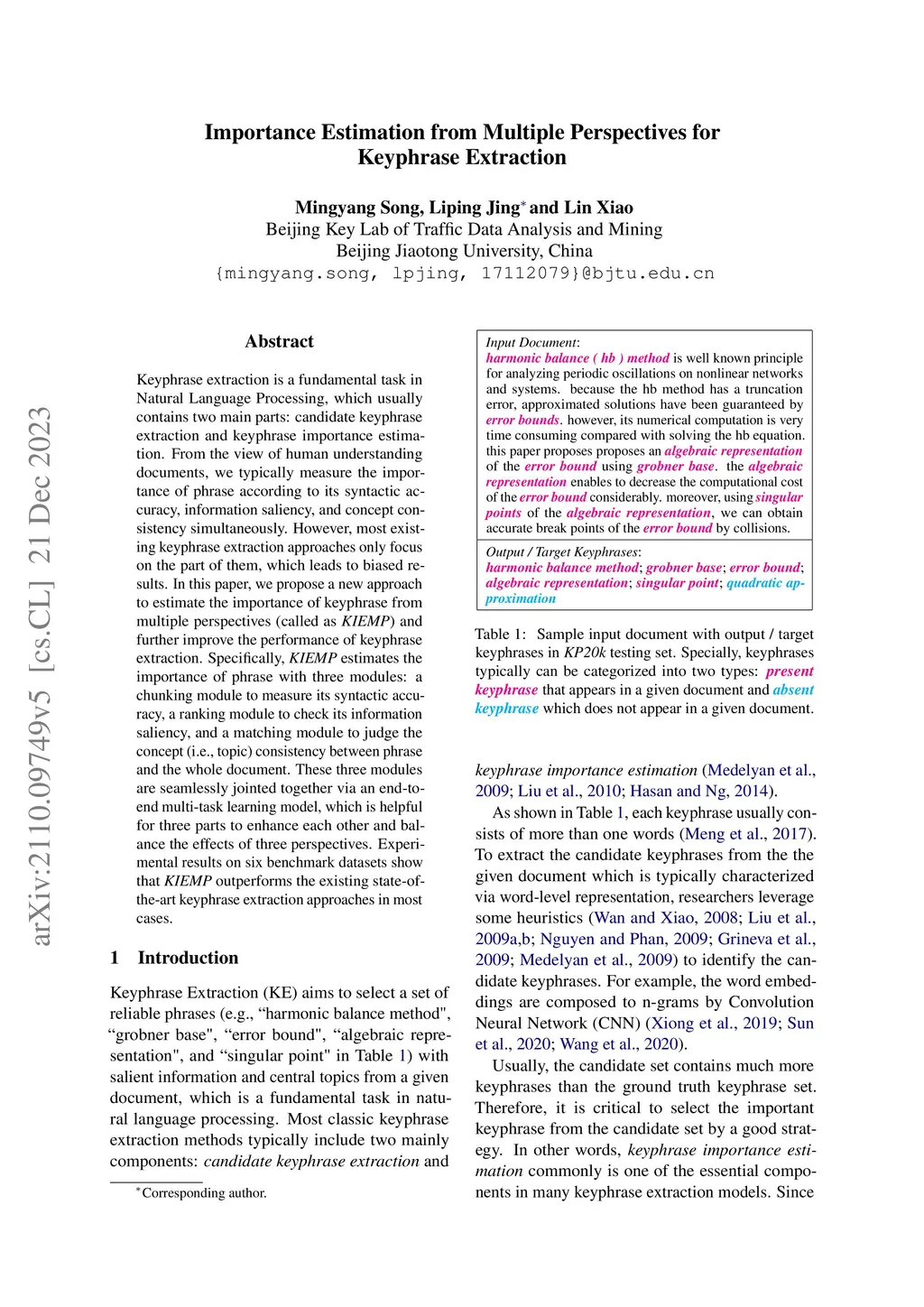 Importance Estimation from Multiple Perspectives for Keyphrase