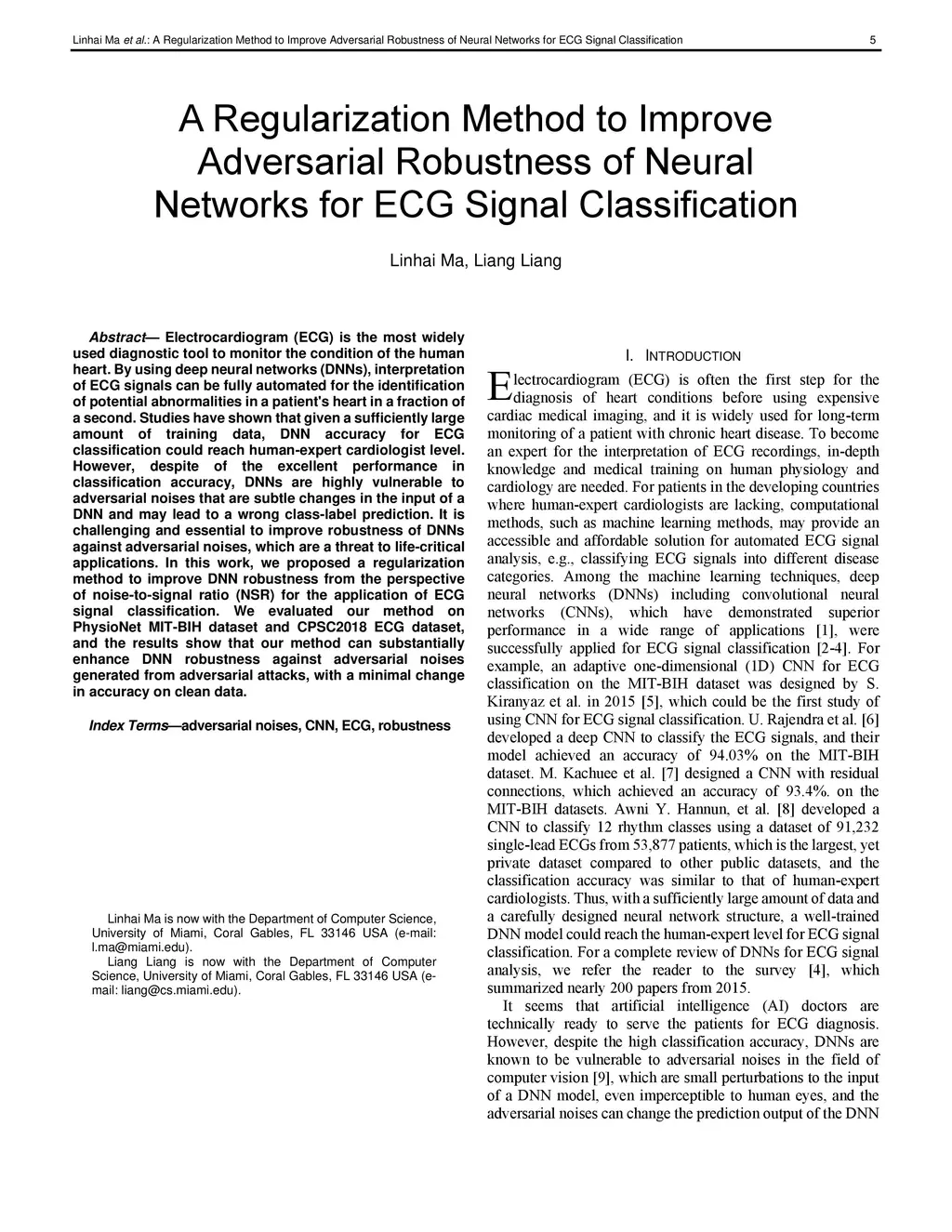 Electrocardiogram (ECG) is the most widely used diagnostic tool to monitor the condition of the human heart. By using deep neural networks (DNNs), interpretation of ECG signals can be fully automated for the identification of potential abnormalities in a patient's heart in a fraction of a second. Studies have shown that given a sufficiently large amount of training data, DNN accuracy for ECG classification could reach human-expert cardiologist level. However, despite of the excellent performance in classification accuracy, DNNs are highly vulnerable to adversarial noises that are subtle changes in the input of a DNN and may lead to a wrong class-label prediction. It is challenging and essential to improve robustness of DNNs against adversarial noises, which are a threat to life-critical applications. In this work, we proposed a regularization method to improve DNN robustness from the perspective of noise-to-signal ratio (NSR) for the application of ECG signal classification. We evaluated our method on PhysioNet MIT-BIH dataset and CPSC2018 ECG dataset, and the results show that our method can substantially enhance DNN robustness against adversarial noises generated from adversarial attacks, with a minimal change in accuracy on clean data.