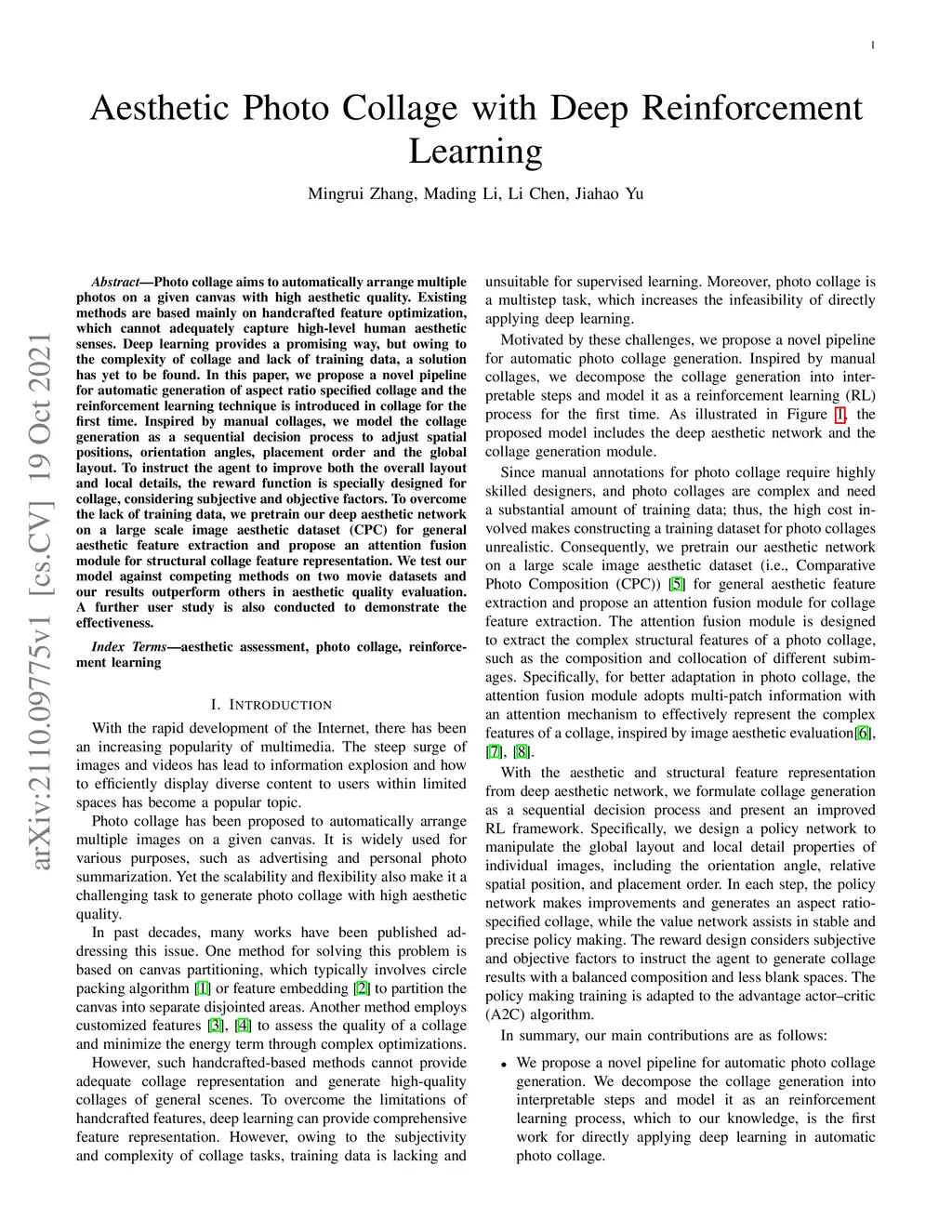 Aesthetic Photo Collage with Deep Reinforcement Learning