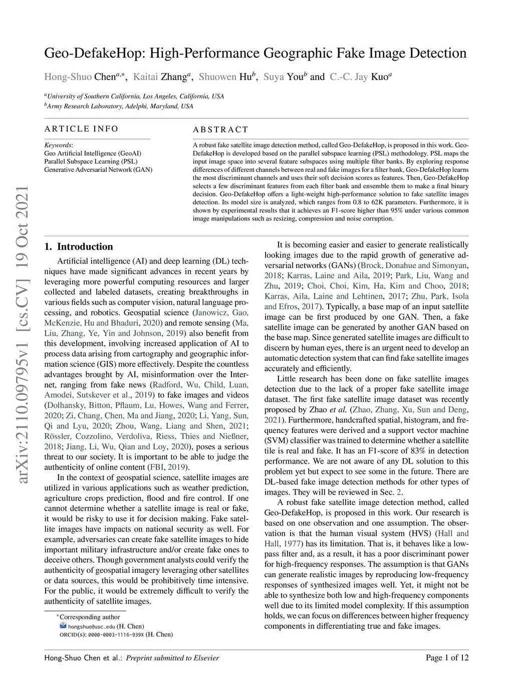 Geo-DefakeHop: High-Performance Geographic Fake Image Detection
