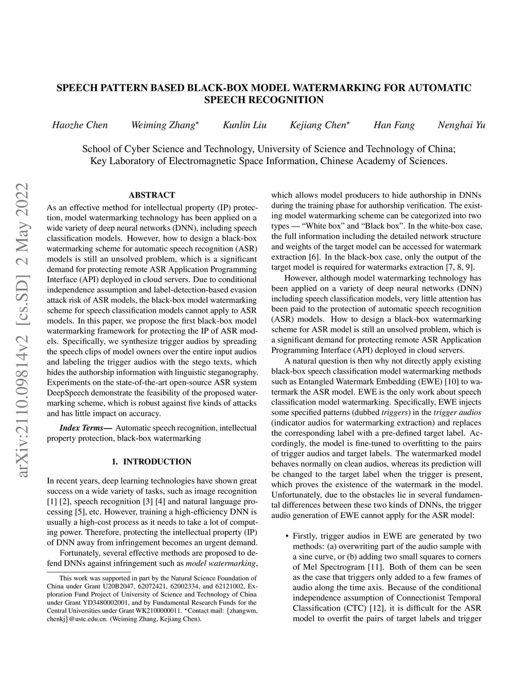 Speech Pattern based Black-box Model Watermarking for Automatic Speech