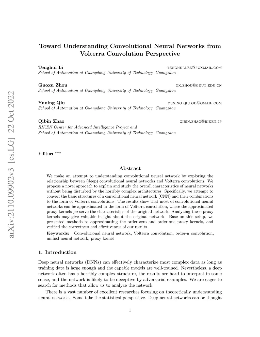Toward Understanding Convolutional Neural Networks from Volterra