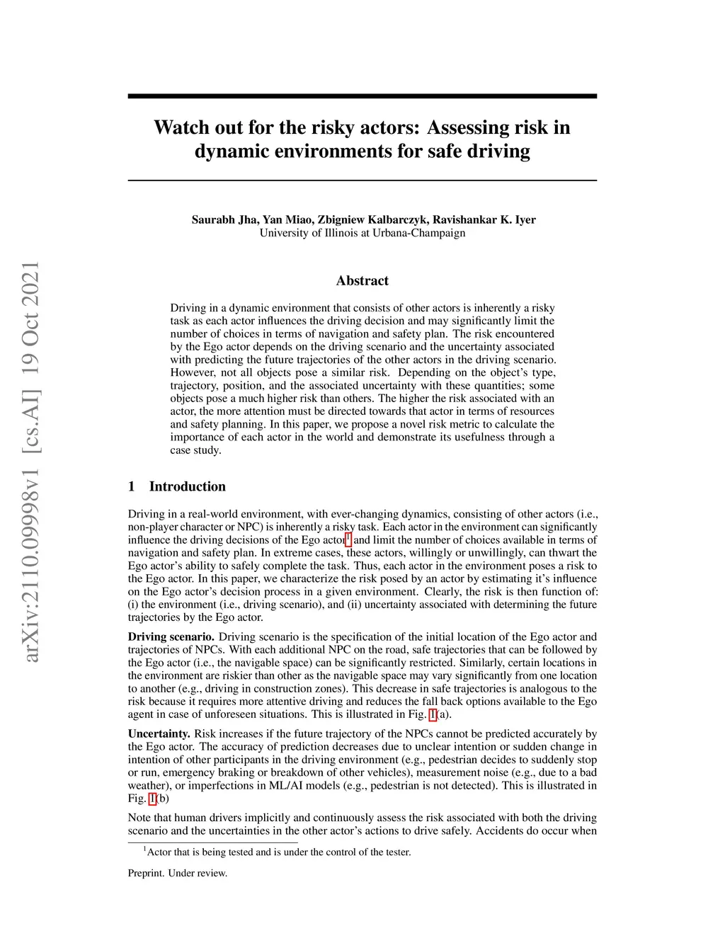 Driving in a dynamic environment that consists of other actors is inherently a risky task as each actor influences the driving decision and may significantly limit the number of choices in terms of navigation and safety plan. The risk encountered by the Ego actor depends on the driving scenario and the uncertainty associated with predicting the future trajectories of the other actors in the driving scenario. However, not all objects pose a similar risk. Depending on the object's type, trajectory, position, and the associated uncertainty with these quantities; some objects pose a much higher risk than others. The higher the risk associated with an actor, the more attention must be directed towards that actor in terms of resources and safety planning. In this paper, we propose a novel risk metric to calculate the importance of each actor in the world and demonstrate its usefulness through a case study.