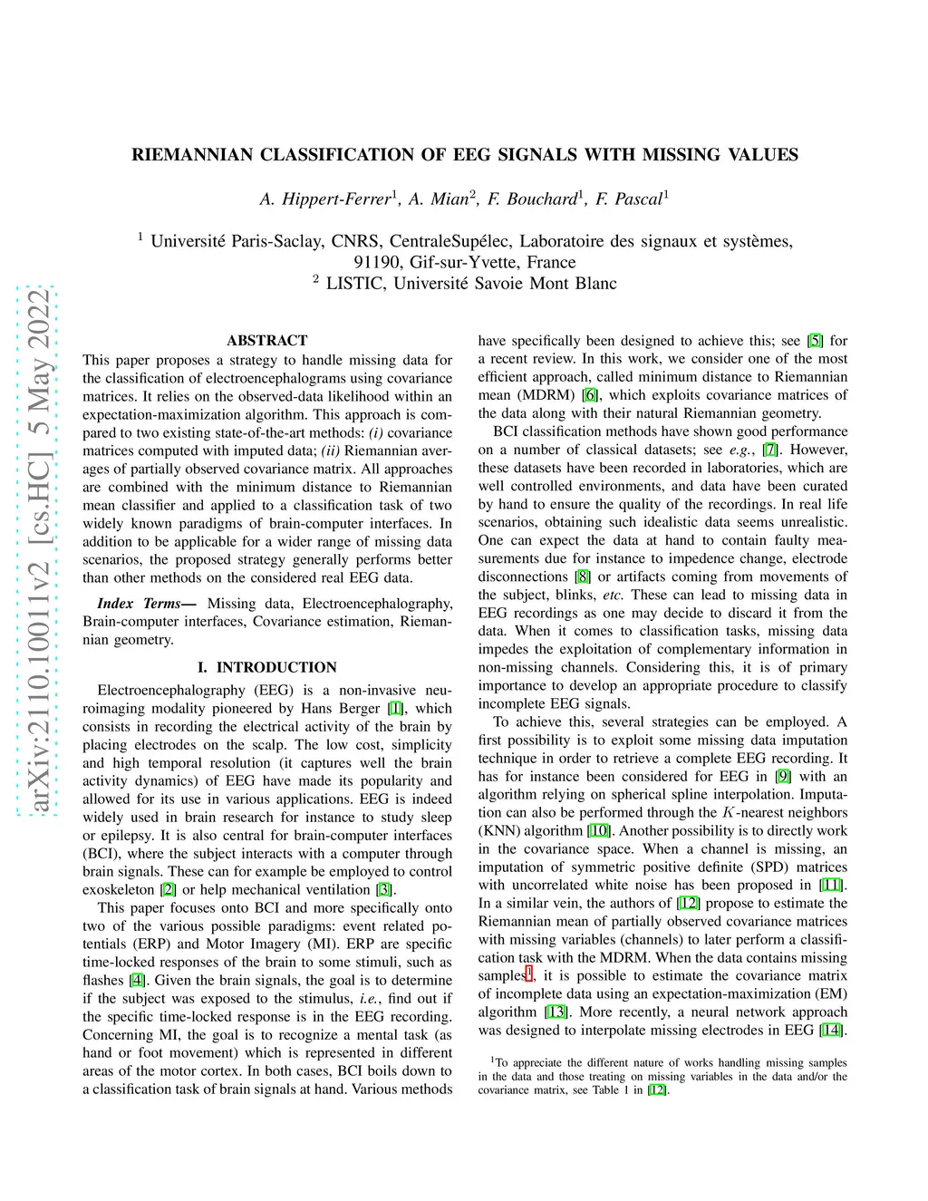 Riemannian classification of EEG signals with missing values