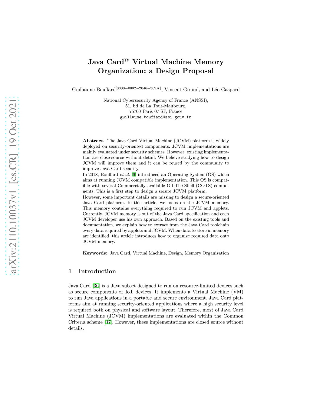 Java Card Virtual Machine Memory Organization: a Design Proposal