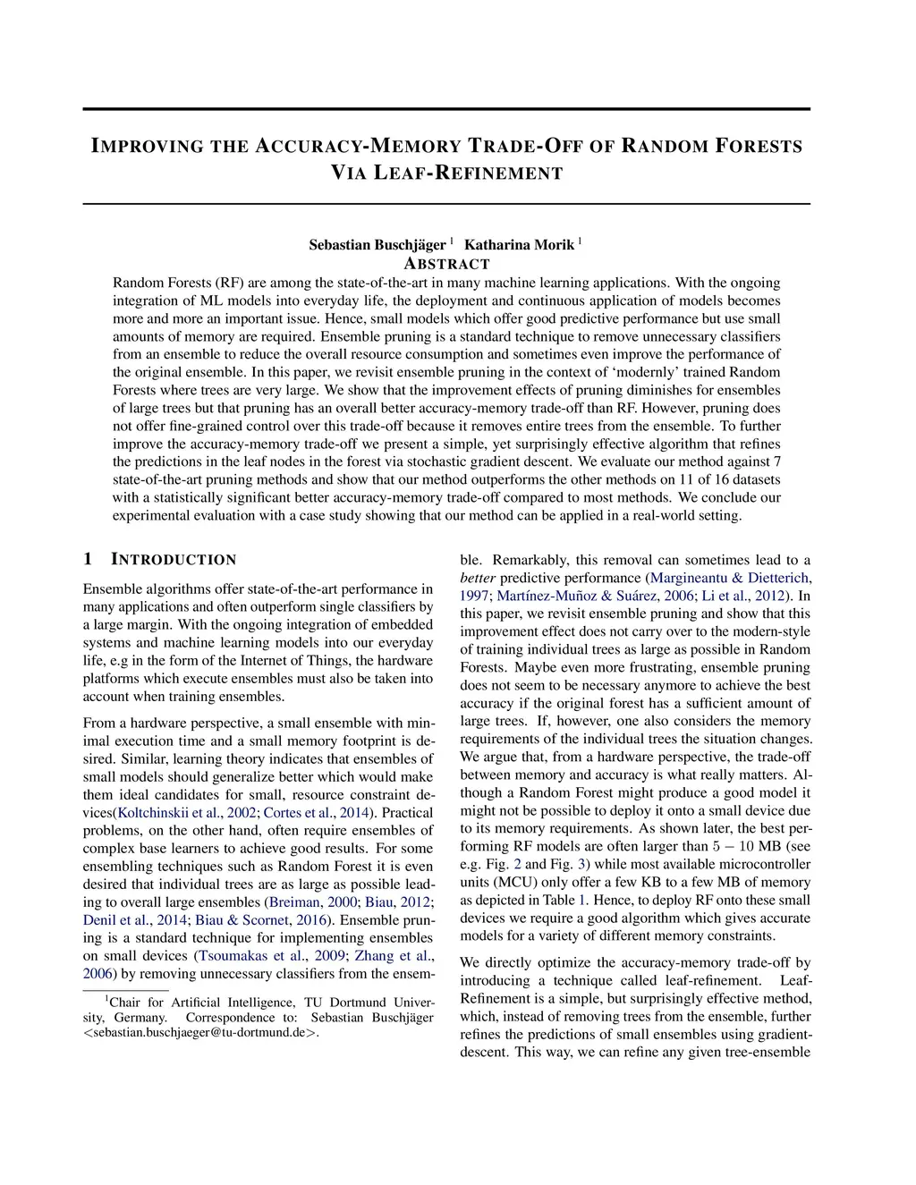 Improving the Accuracy-Memory Trade-Off of Random Forests Via