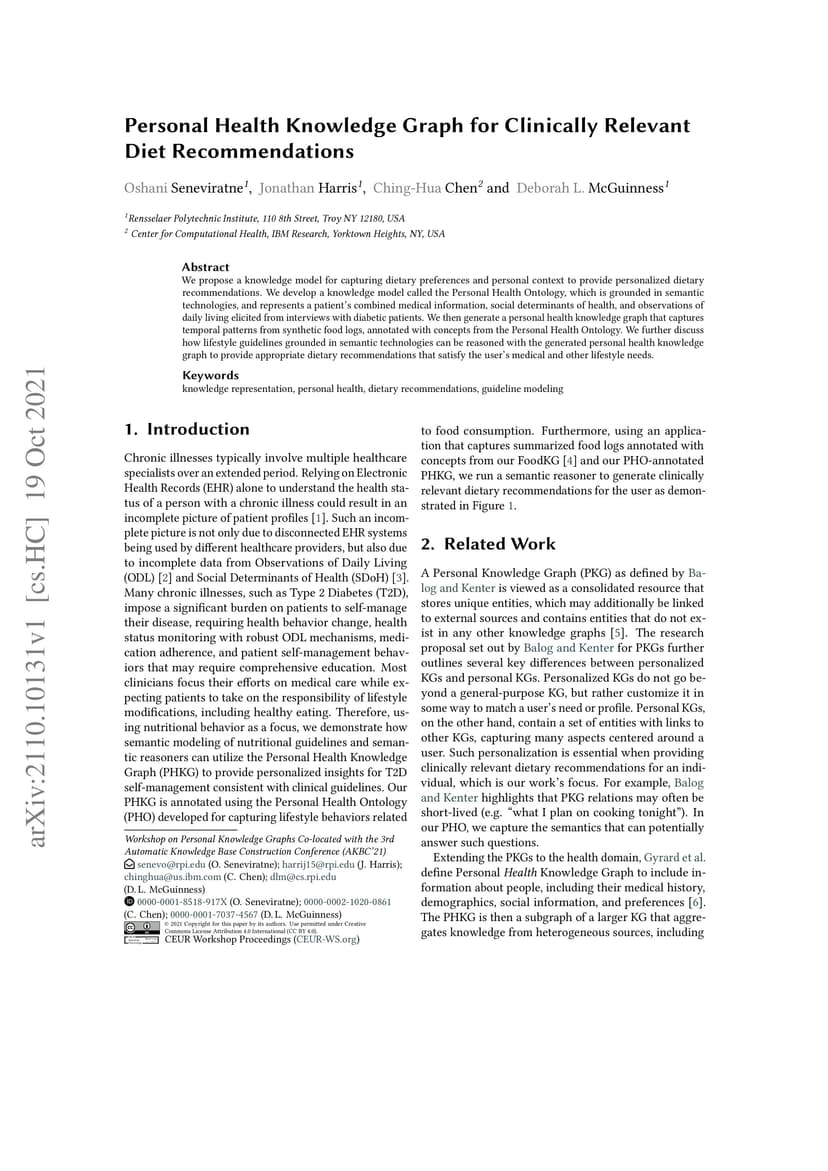 Personal Health Knowledge Graph for Clinically Relevant Diet