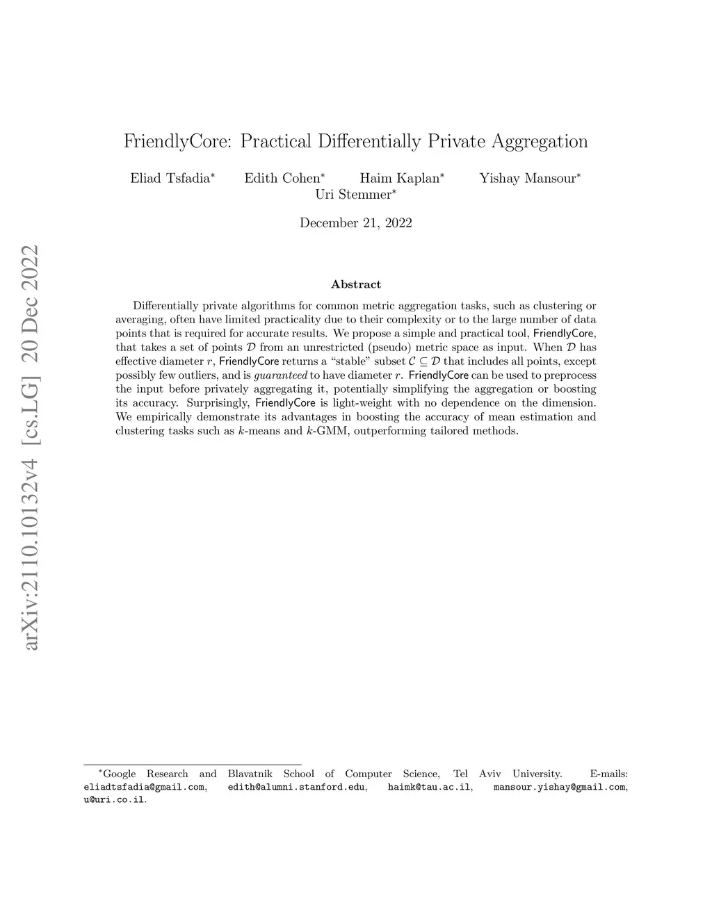 FriendlyCore: Practical Differentially Private Aggregation