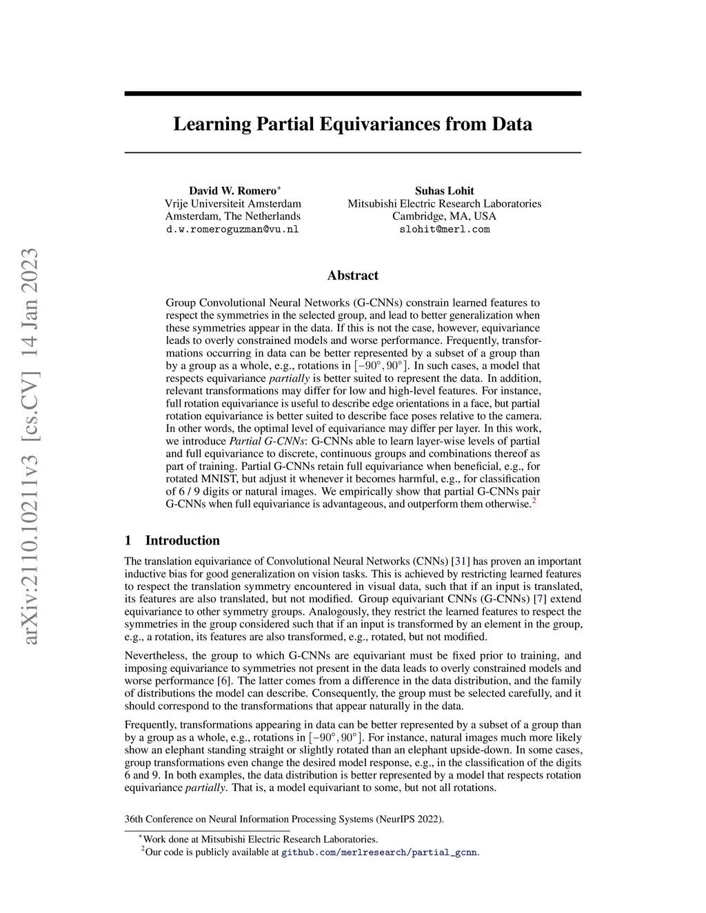 Group Convolutional Neural Networks (G-CNNs) constrain learned features to respect the symmetries in the selected group, and lead to better generalization when these symmetries appear in the data. If this is not the case, however, equivariance leads to overly constrained models and worse performance. Frequently, transformations occurring in data can be better represented by a subset of a group than by a group as a whole, e.g., rotations in . In such cases, a model that respects equivariance is better suited to represent the data. In addition, relevant transformations may differ for low and high-level features. For instance, full rotation equivariance is useful to describe edge orientations in a face, but partial rotation equivariance is better suited to describe face poses relative to the camera. In other words, the optimal level of equivariance may differ per layer. In this work, we introduce : G-CNNs able to learn layer-wise levels of partial and full equivariance to discrete, continuous groups and combinations thereof as part of training. Partial G-CNNs retain full equivariance when beneficial, e.g., for rotated MNIST, but adjust it whenever it becomes harmful, e.g., for classification of 6 / 9 digits or natural images. We empirically show that partial G-CNNs pair G-CNNs when full equivariance is advantageous, and outperform them otherwise.