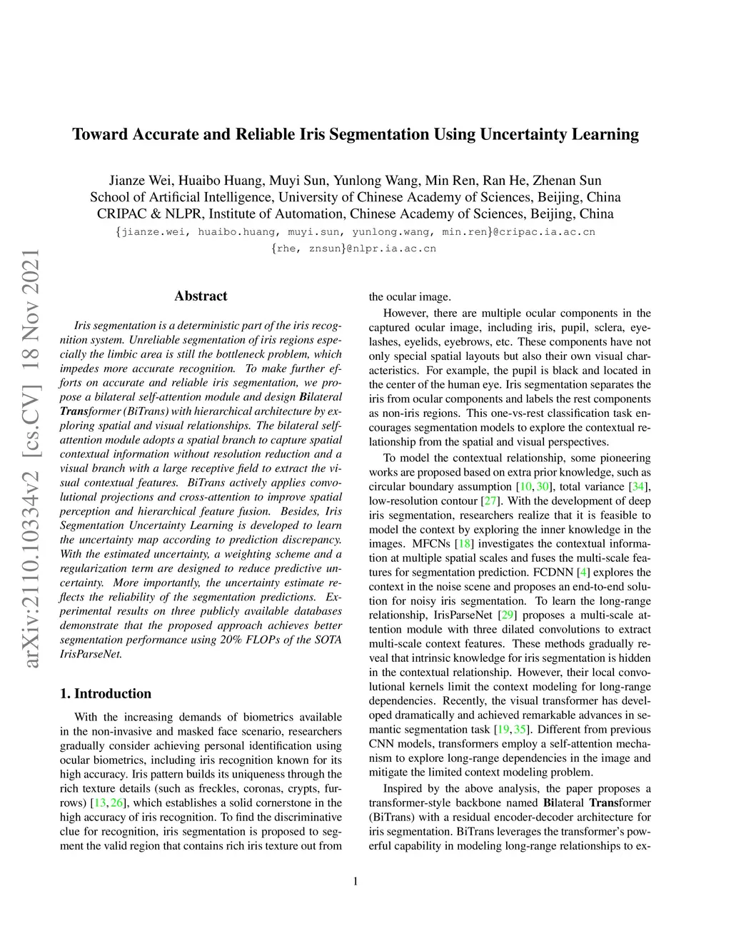 Toward Accurate and Reliable Iris Segmentation Using Uncertainty