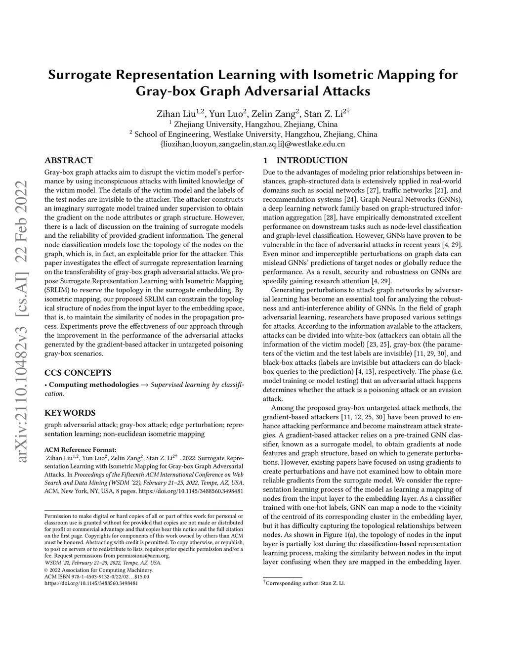 Gray-box graph attacks aim at disrupting the performance of the victim model by using inconspicuous attacks with limited knowledge of the victim model. The parameters of the victim model and the labels of the test nodes are invisible to the attacker. To obtain the gradient on the node attributes or graph structure, the attacker constructs an imaginary surrogate model trained under supervision. However, there is a lack of discussion on the training of surrogate models and the robustness of provided gradient information. The general node classification model loses the topology of the nodes on the graph, which is, in fact, an exploitable prior for the attacker. This paper investigates the effect of representation learning of surrogate models on the transferability of gray-box graph adversarial attacks. To reserve the topology in the surrogate embedding, we propose Surrogate Representation Learning with Isometric Mapping (SRLIM). By using Isometric mapping method, our proposed SRLIM can constrain the topological structure of nodes from the input layer to the embedding space, that is, to maintain the similarity of nodes in the propagation process. Experiments prove the effectiveness of our approach through the improvement in the performance of the adversarial attacks generated by the gradient-based attacker in untargeted poisoning gray-box setups.