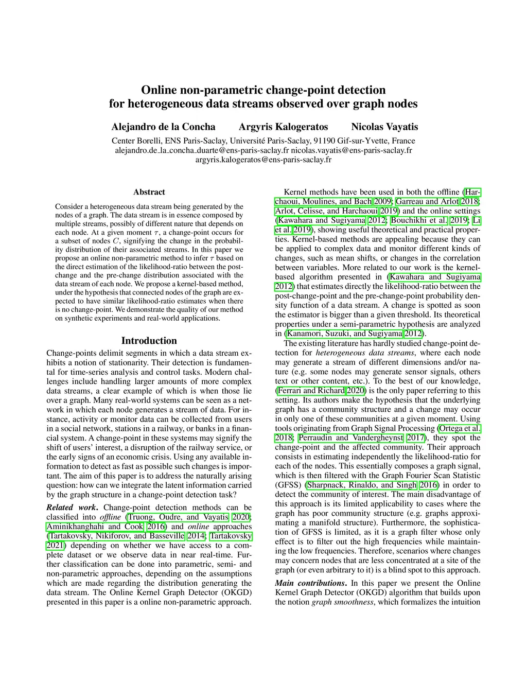 Consider a heterogeneous data stream being generated by the nodes of a graph. The data stream is in essence composed by multiple streams, possibly of different nature that depends on each node. At a given moment , a change-point occurs for a subset of nodes , signifying the change in the probability distribution of their associated streams. In this paper we propose an online non-parametric method to infer based on the direct estimation of the likelihood-ratio between the post-change and the pre-change distribution associated with the data stream of each node. We propose a kernel-based method, under the hypothesis that connected nodes of the graph are expected to have similar likelihood-ratio estimates when there is no change-point. We demonstrate the quality of our method on synthetic experiments and real-world applications.