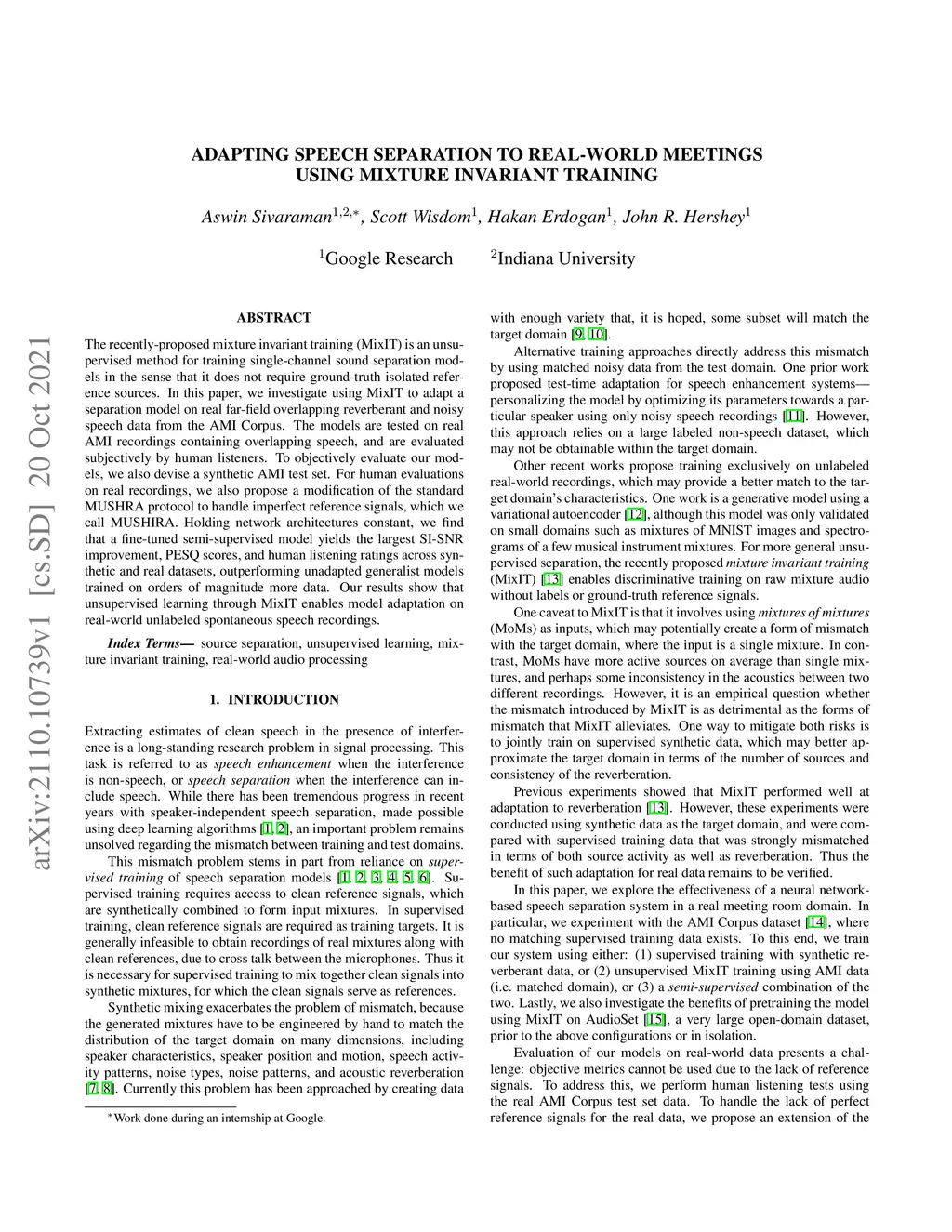 The recently-proposed mixture invariant training (MixIT) is an unsupervised method for training single-channel sound separation models in the sense that it does not require ground-truth isolated reference sources. In this paper, we investigate using MixIT to adapt a separation model on real far-field overlapping reverberant and noisy speech data from the AMI Corpus. The models are tested on real AMI recordings containing overlapping speech, and are evaluated subjectively by human listeners. To objectively evaluate our models, we also devise a synthetic AMI test set. For human evaluations on real recordings, we also propose a modification of the standard MUSHRA protocol to handle imperfect reference signals, which we call MUSHIRA. Holding network architectures constant, we find that a fine-tuned semi-supervised model yields the largest SI-SNR improvement, PESQ scores, and human listening ratings across synthetic and real datasets, outperforming unadapted generalist models trained on orders of magnitude more data. Our results show that unsupervised learning through MixIT enables model adaptation on real-world unlabeled spontaneous speech recordings.