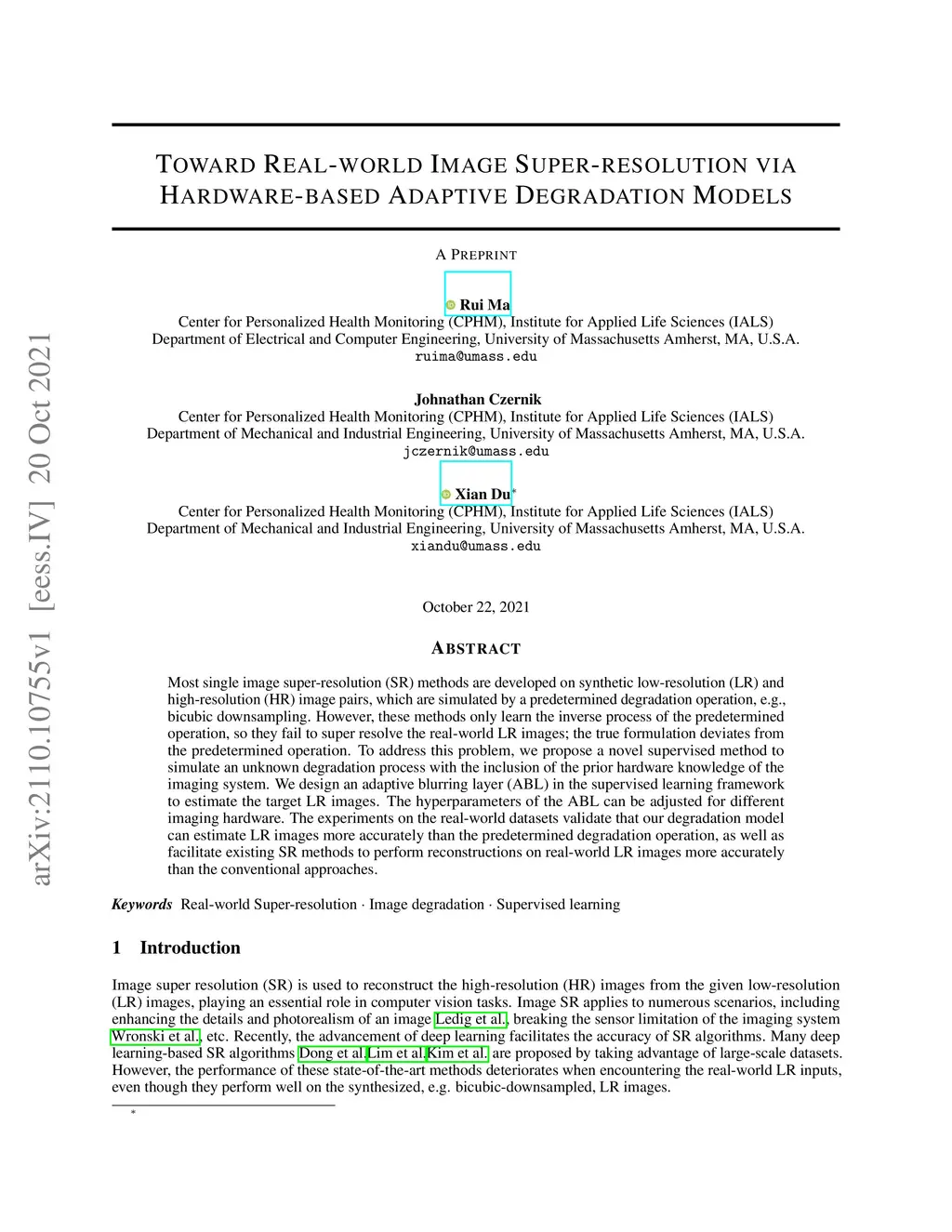Most single image super-resolution (SR) methods are developed on synthetic low-resolution (LR) and high-resolution (HR) image pairs, which are simulated by a predetermined degradation operation, e.g., bicubic downsampling. However, these methods only learn the inverse process of the predetermined operation, so they fail to super resolve the real-world LR images; the true formulation deviates from the predetermined operation. To address this problem, we propose a novel supervised method to simulate an unknown degradation process with the inclusion of the prior hardware knowledge of the imaging system. We design an adaptive blurring layer (ABL) in the supervised learning framework to estimate the target LR images. The hyperparameters of the ABL can be adjusted for different imaging hardware. The experiments on the real-world datasets validate that our degradation model can estimate LR images more accurately than the predetermined degradation operation, as well as facilitate existing SR methods to perform reconstructions on real-world LR images more accurately than the conventional approaches.