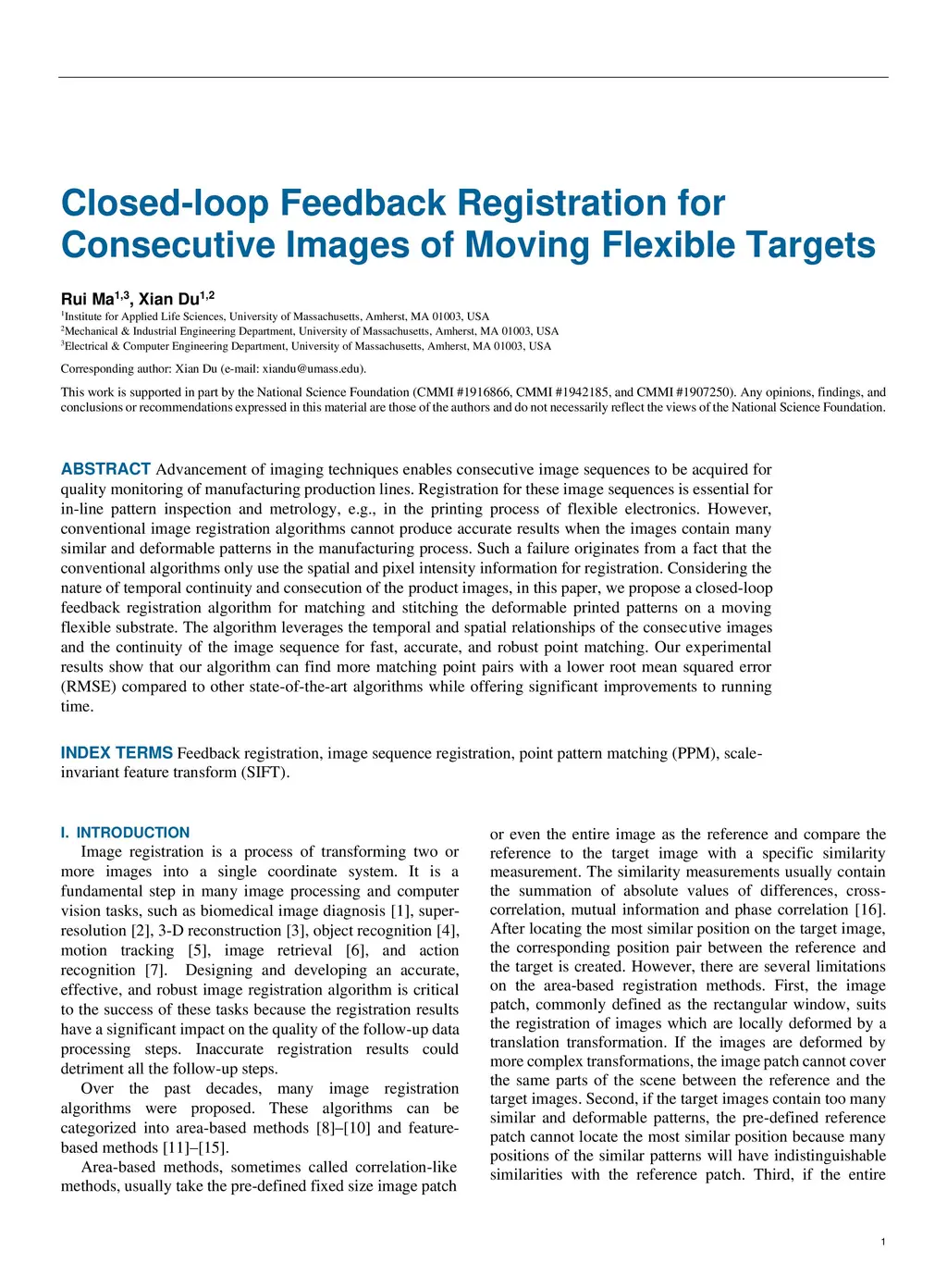 Closed-loop Feedback Registration for Consecutive Images of Moving