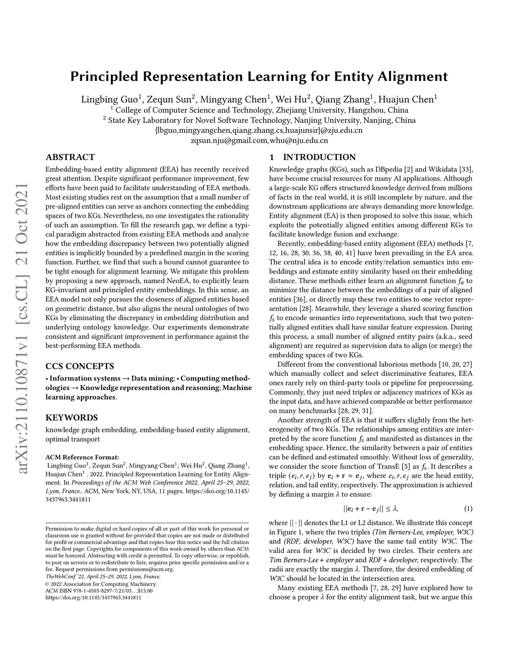 Embedding-based entity alignment (EEA) has recently received great attention. Despite significant performance improvement, few efforts have been paid to facilitate understanding of EEA methods. Most existing studies rest on the assumption that a small number of pre-aligned entities can serve as anchors connecting the embedding spaces of two KGs. Nevertheless, no one investigates the rationality of such an assumption. To fill the research gap, we define a typical paradigm abstracted from existing EEA methods and analyze how the embedding discrepancy between two potentially aligned entities is implicitly bounded by a predefined margin in the scoring function. Further, we find that such a bound cannot guarantee to be tight enough for alignment learning. We mitigate this problem by proposing a new approach, named NeoEA, to explicitly learn KG-invariant and principled entity embeddings. In this sense, an EEA model not only pursues the closeness of aligned entities based on geometric distance, but also aligns the neural ontologies of two KGs by eliminating the discrepancy in embedding distribution and underlying ontology knowledge. Our experiments demonstrate consistent and significant improvement in performance against the best-performing EEA methods.