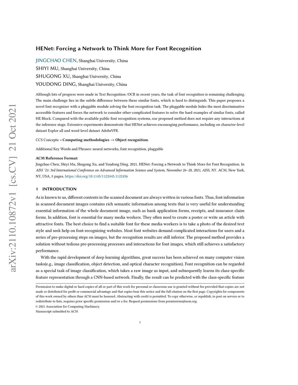 HENet: Forcing a Network to Think More for Font Recognition