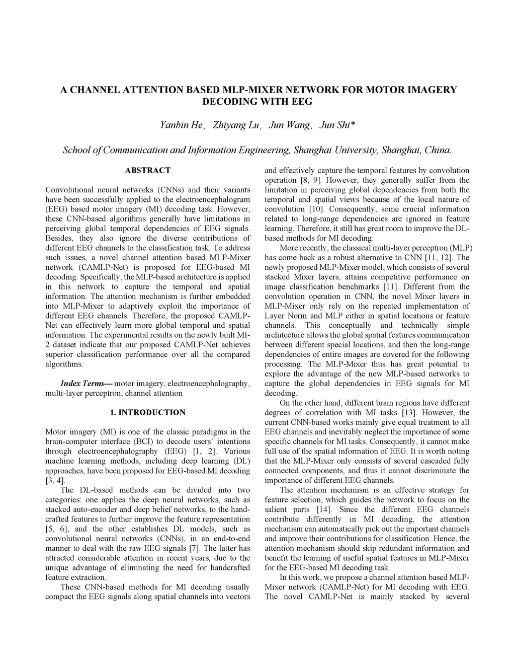 A channel attention based MLP-Mixer network for motor imagery decoding